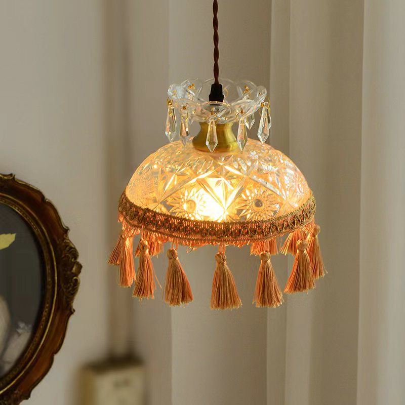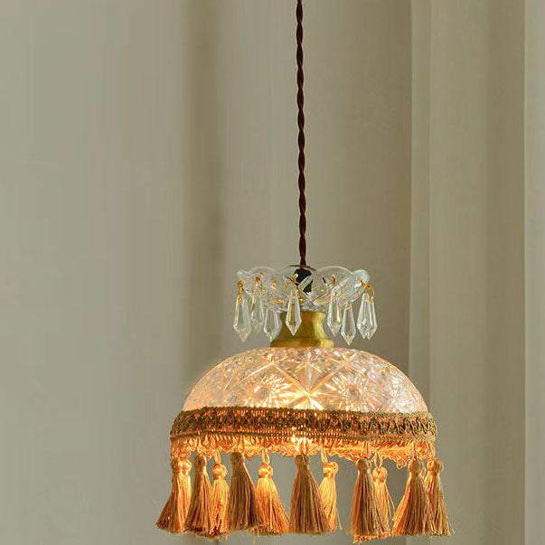 French Luxury Glass Copper Dome Tassel 1-Light Pendant Light