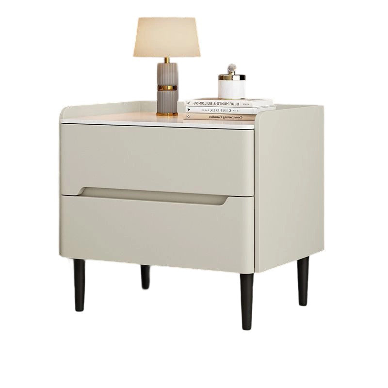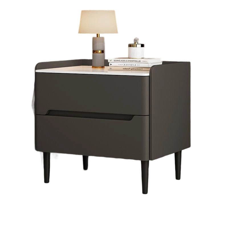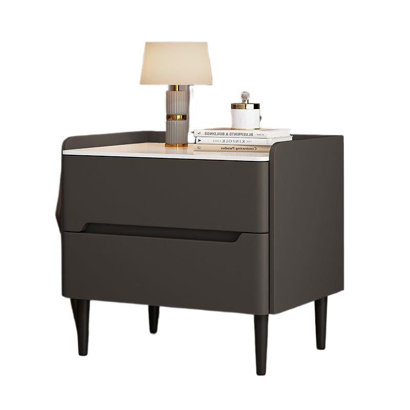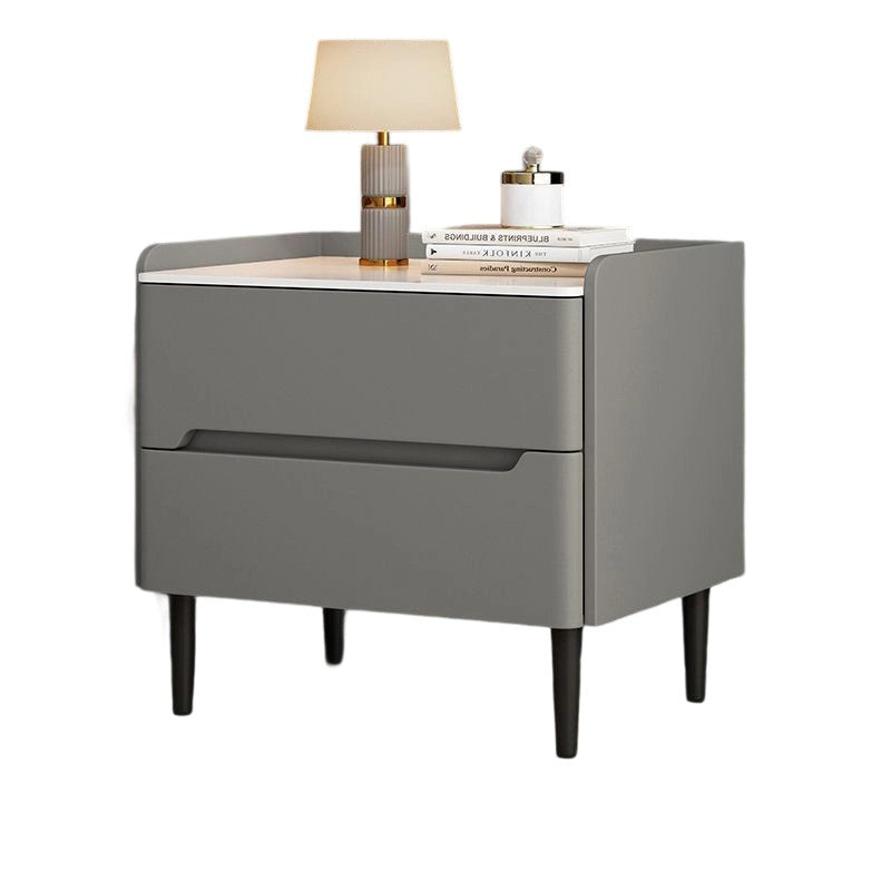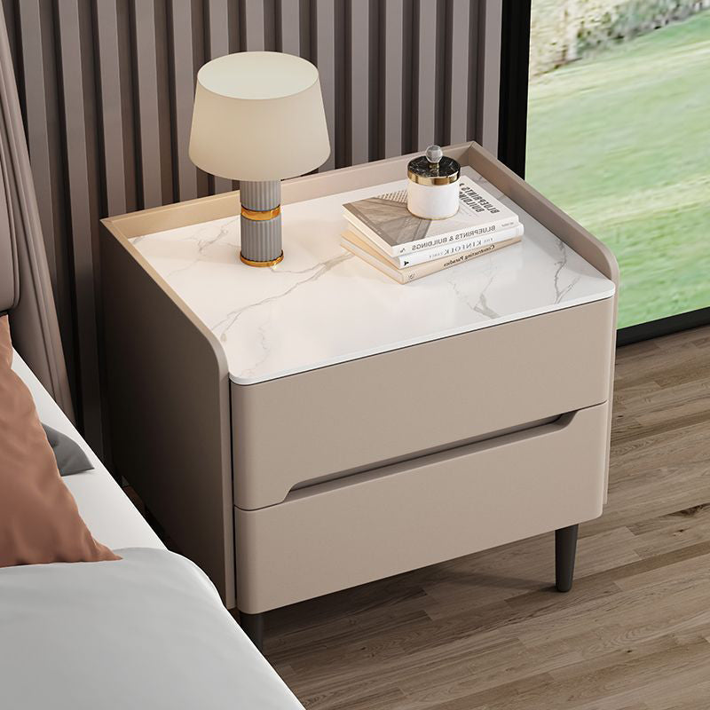 Modern Luxury Sintered Stone Pine Wood Nappa Leather Rounded Square Nightstand With 2 Drawers For Bedroom
