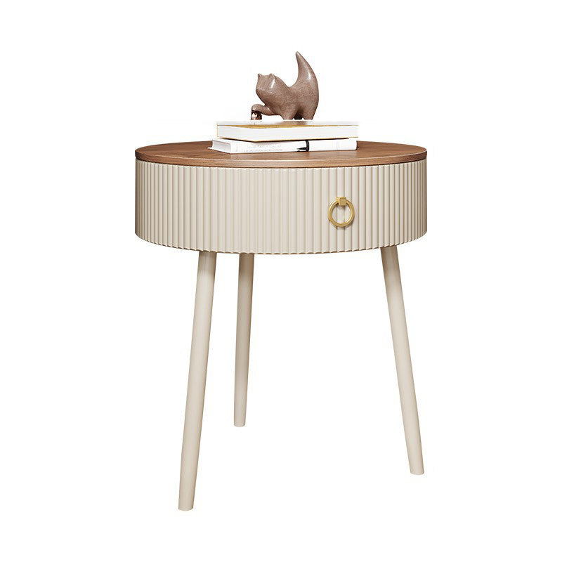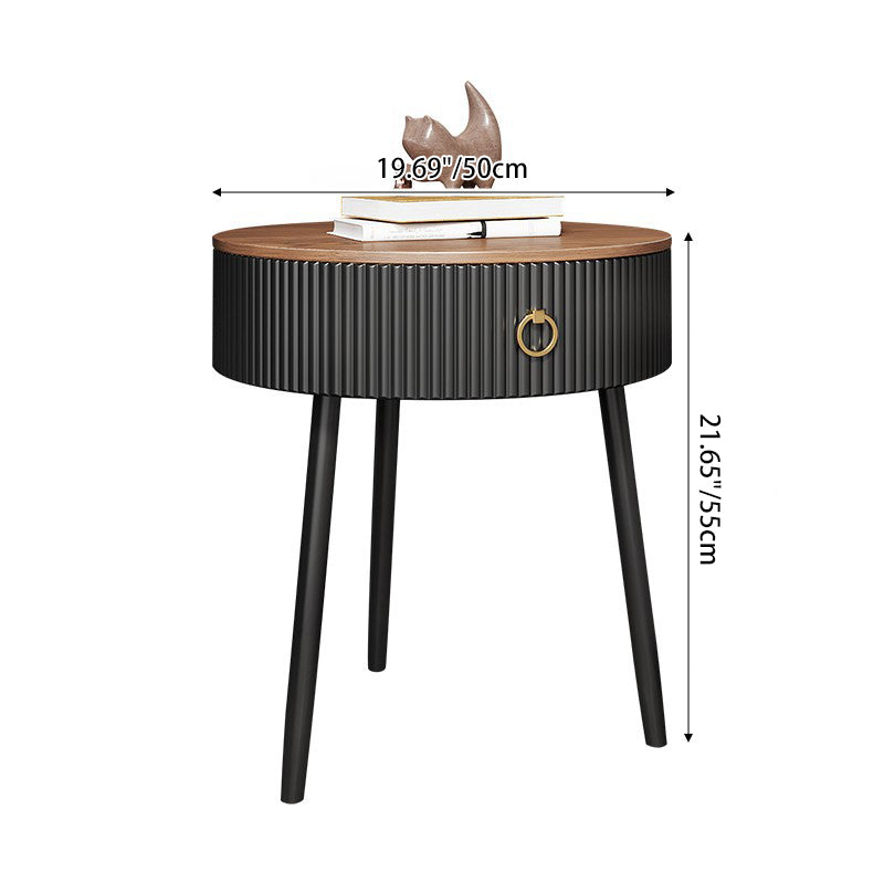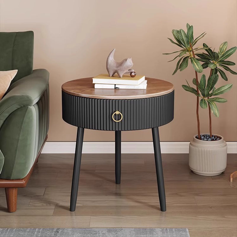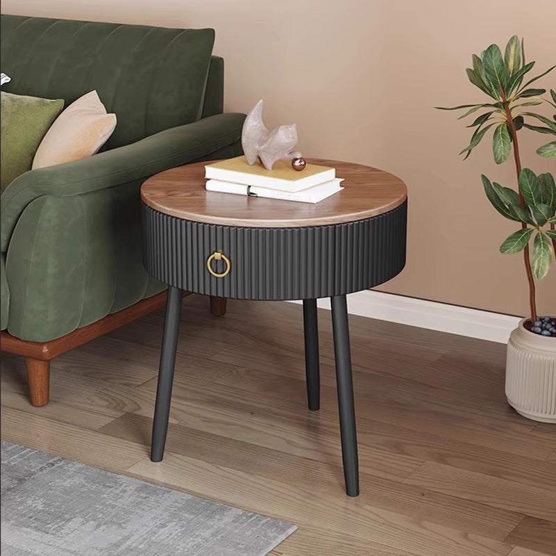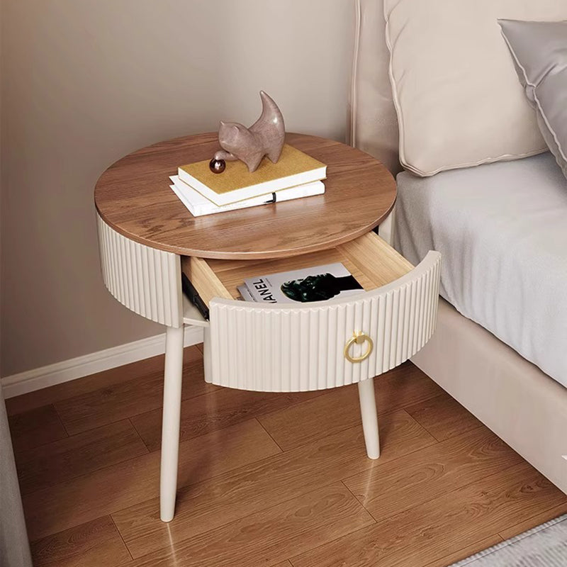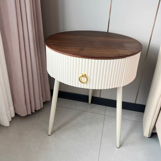 Modern Luxury Solid Wood Iron PVC Round Textured Nightstand With 1 Drawer For Bedroom