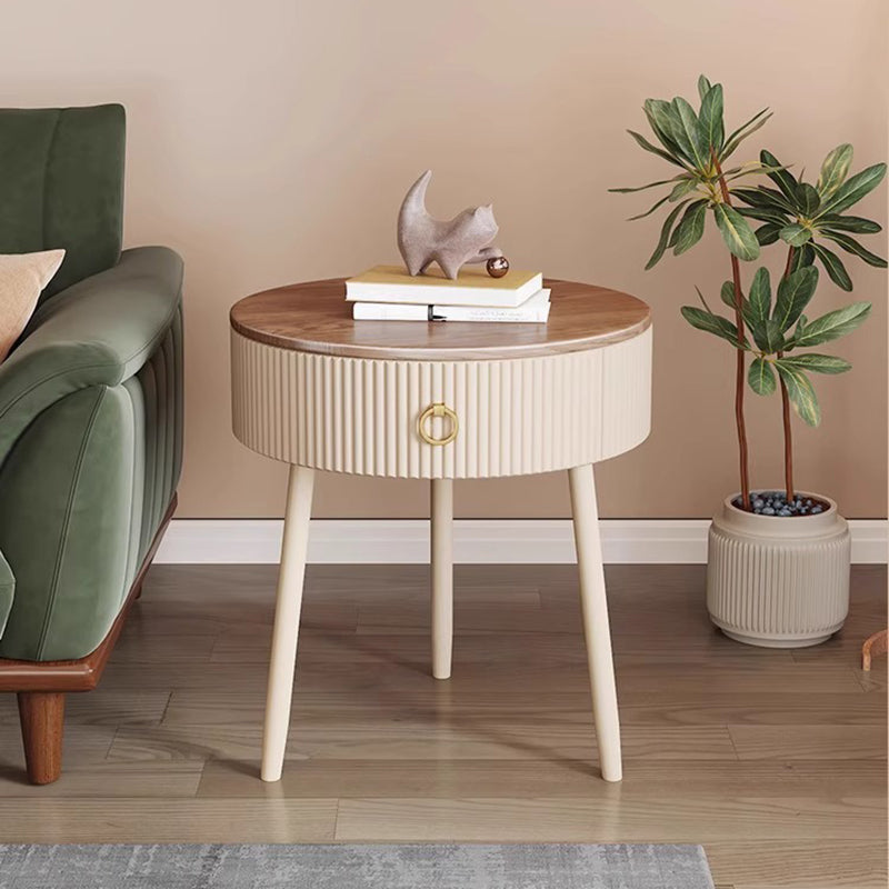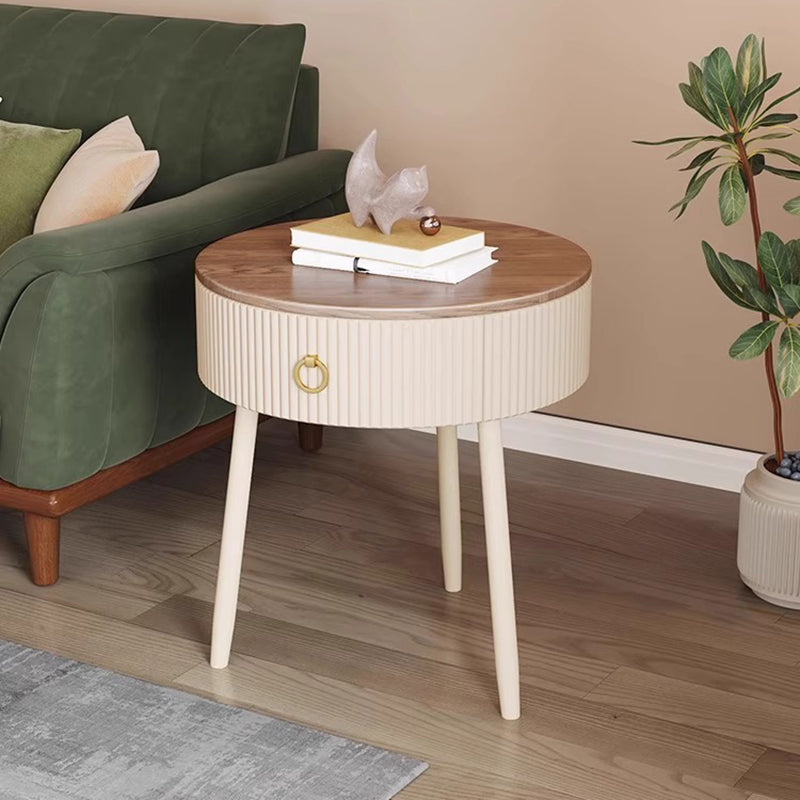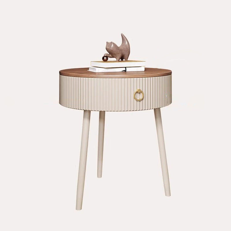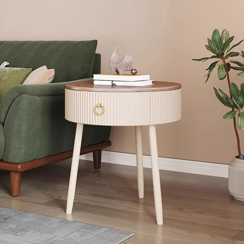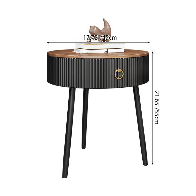 Modern Luxury Solid Wood Iron PVC Round Textured Nightstand With 1 Drawer For Bedroom