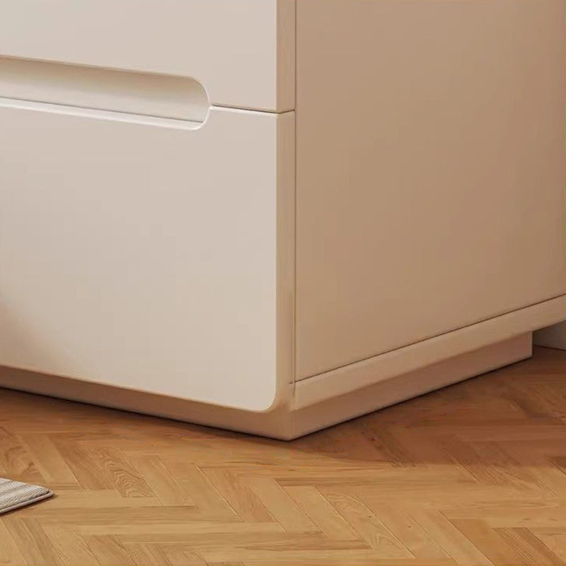 This modern solid wood nightstand features a sleek rectangular design with smooth rounded edges for safety and style. Available in cream white finishes, it offers 2 or 3 spacious drawers for convenient bedside storage—perfect for keeping your essentials organized in a cozy, minimalist bedroom.