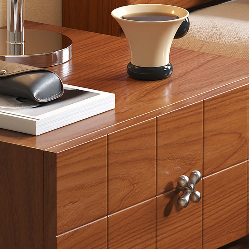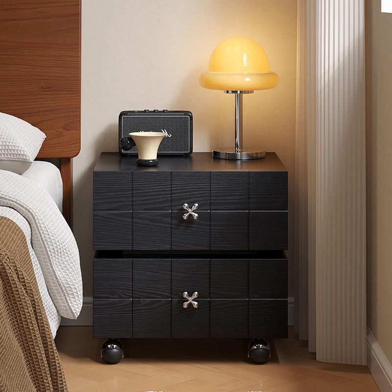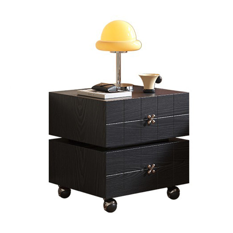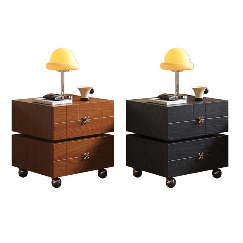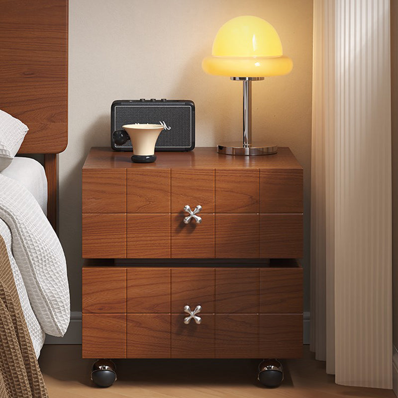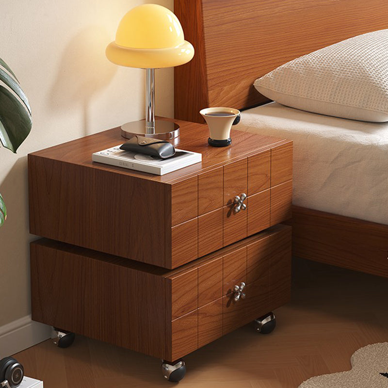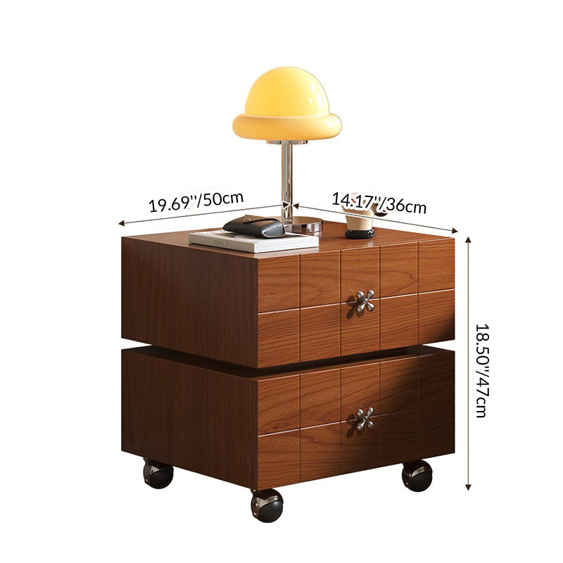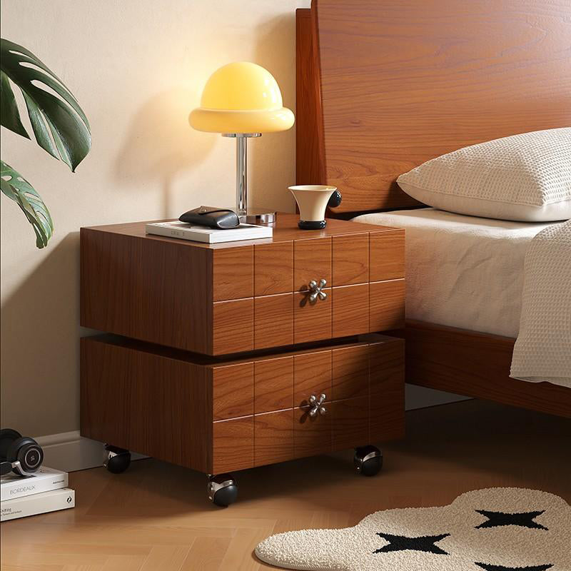 Traditional Vintage Rotatable Rectangular Pine Wood Stainless Steel Movable Nightstand 2-Drawer For Bedroom