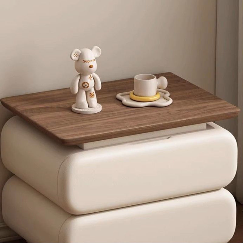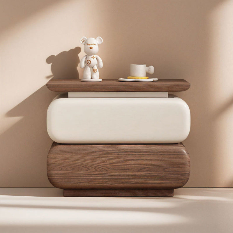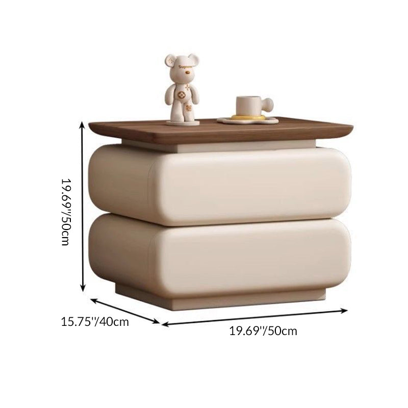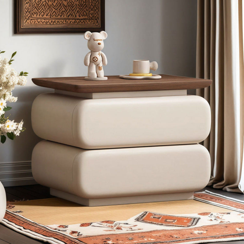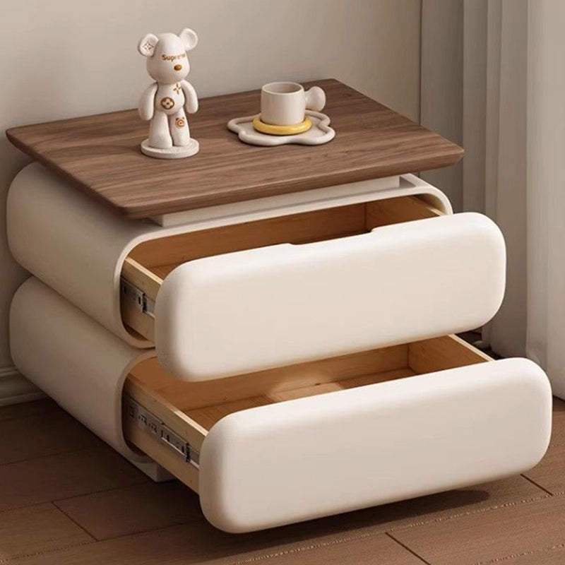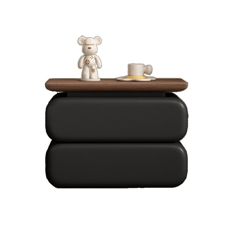 This vintage-inspired nightstand combines solid wood, durable microfiber leather, and sleek metal accents for a refined, timeless look. Featuring two spacious drawers and a sturdy thickened frame, it offers elegant storage in walnut, beige, khaki, and black tones—perfect for modern or retro-style bedrooms.