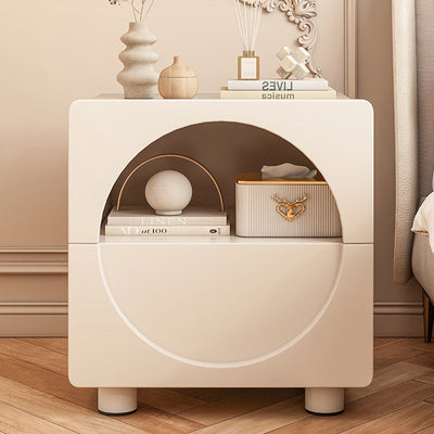 Modern Minimalist Rounded-Edge Round MDF Nightstand 2-Tier For Bedroom
