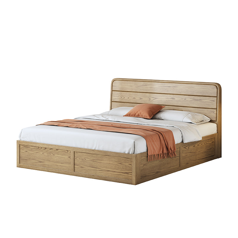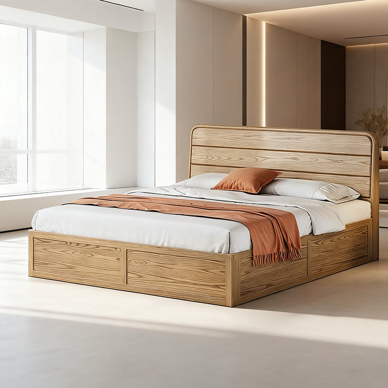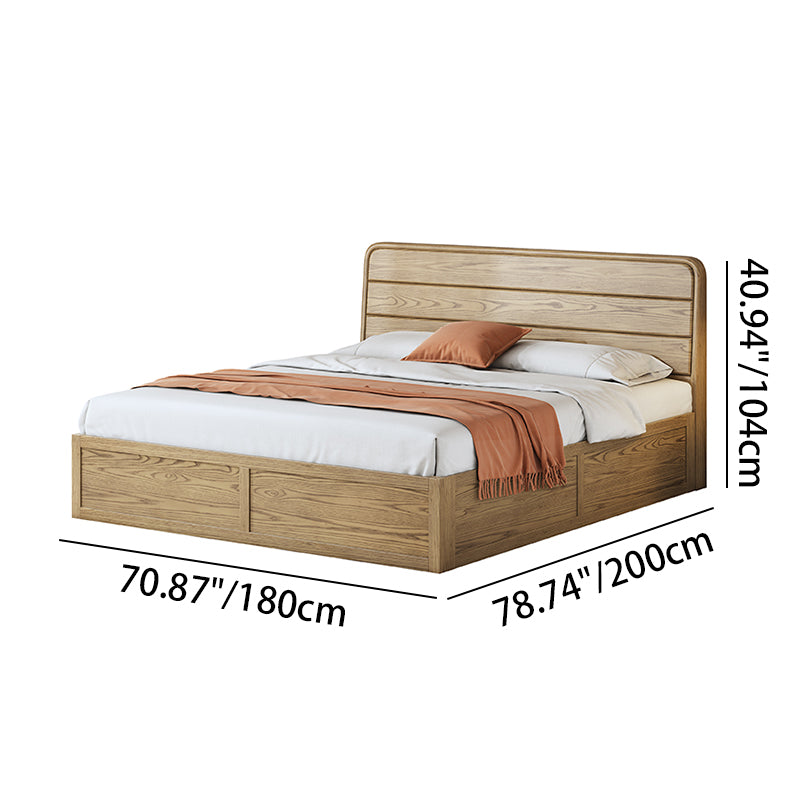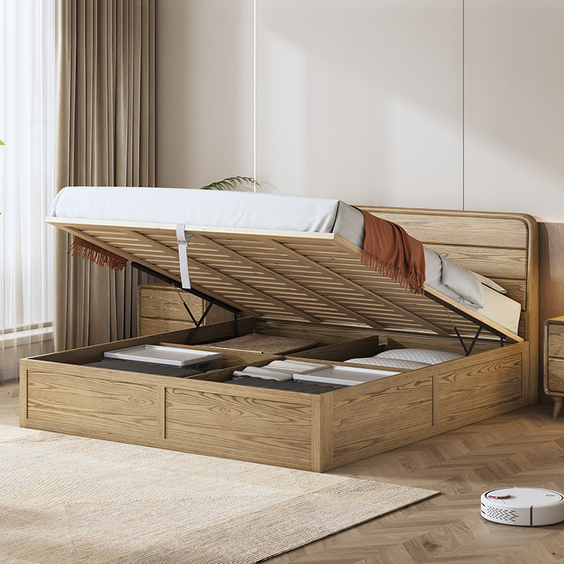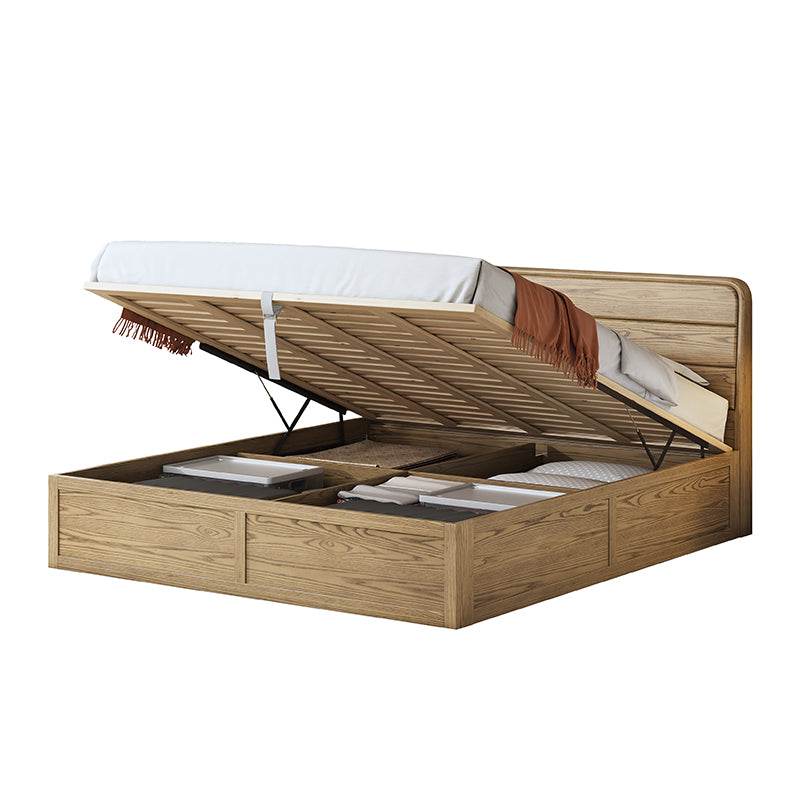Space-Saving Rustic Bed Frame - Natural Ash Wood Lift-Top Storage Bed For Bedroom