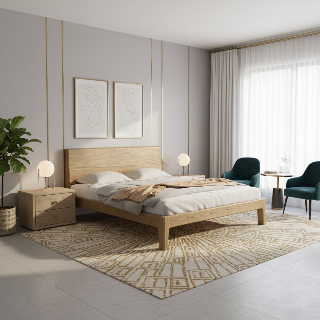 - Full Ash Wood Texture: Headboard, footboard & side panels all in North American ash, unified grain for rich rustic style.