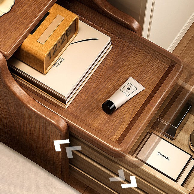 Contemporary Scandinavian Rectangular Rubberwood Solid Wood Space-Saving Nightstand 1-Tier 2-Drawer For Bedroom