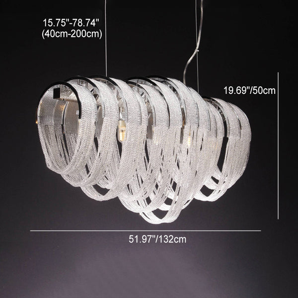 Lujoso contemporáneo rectángulo de flecos de cristal de acero inoxidable con 9/11/13 luces, lámpara de araña para el comedor
