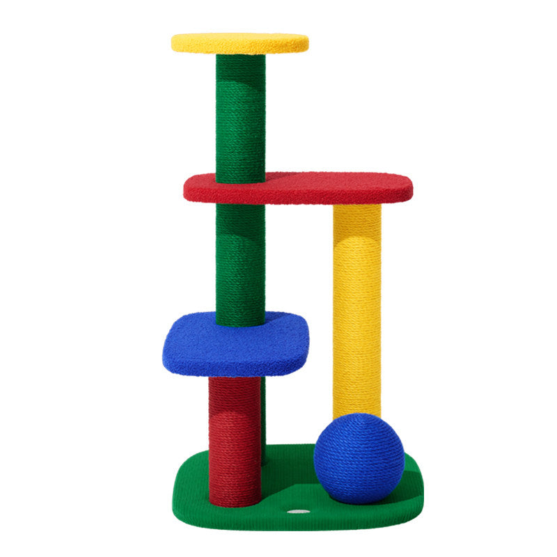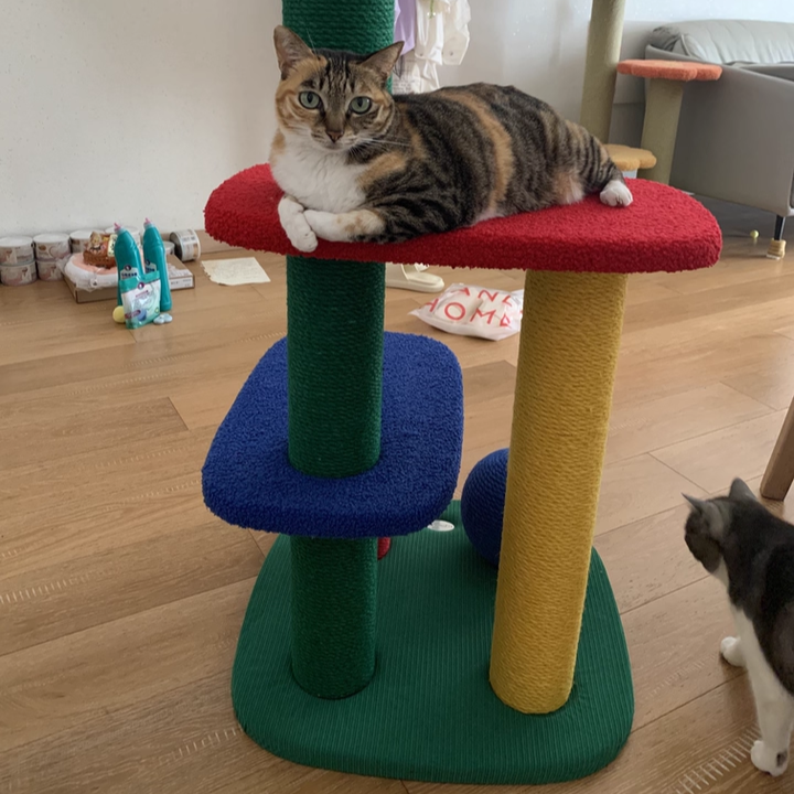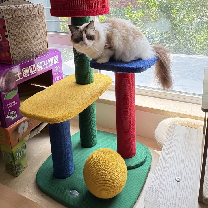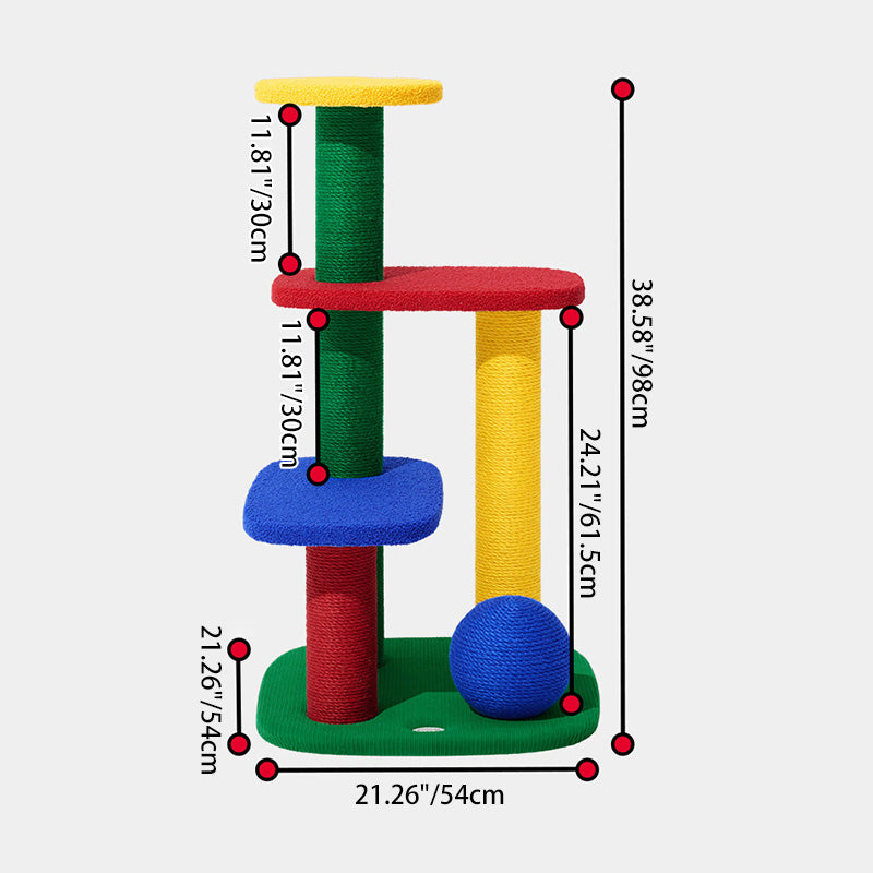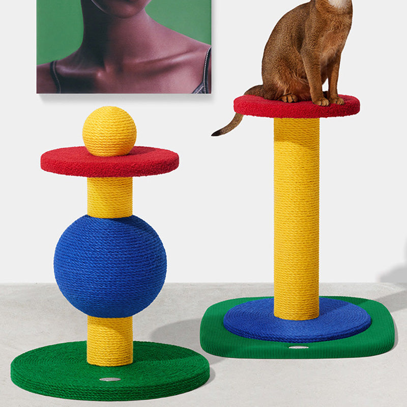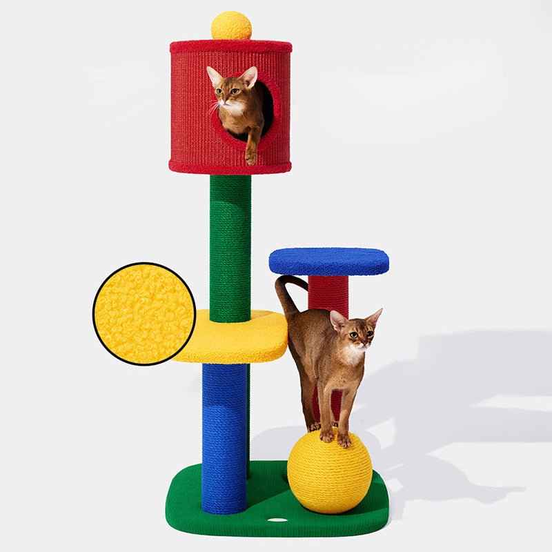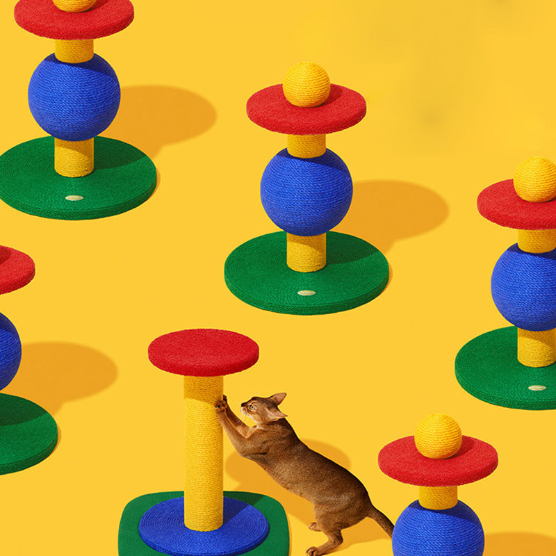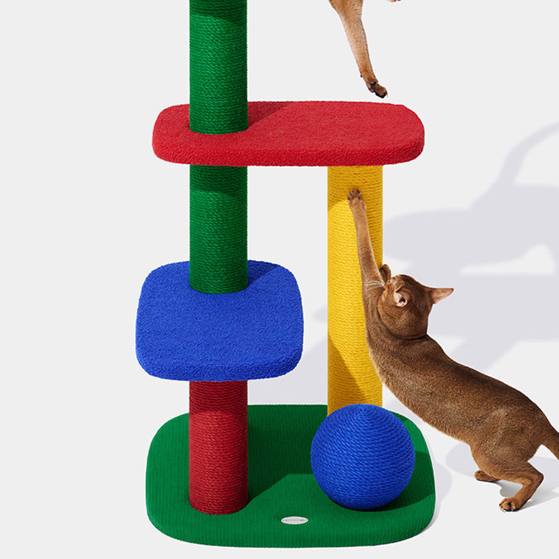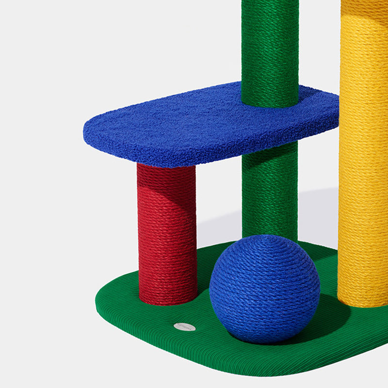 Engineered for the "Super-Scratcher," The Prism Pivot features a sophisticated triple-texture surface to satisfy every feline preference. The structure integrates industrial-strength natural sisal, rugged jute rope, and premium high-density corrugated cardboard panels, offering a 360-degree sensory experience that effectively redirects claws away from your designer sofa. Built for daily high-energy use, this tower supports cats up to 10 kg (22 lbs) with a stable, "Anti-Wobble" foundation. This is the premier choice for urban pet parents seeking modern vertical cat scratchers, colorful cat climbing towers, multi-texture scratching posts, and aesthetic space-saving pet furniture.
