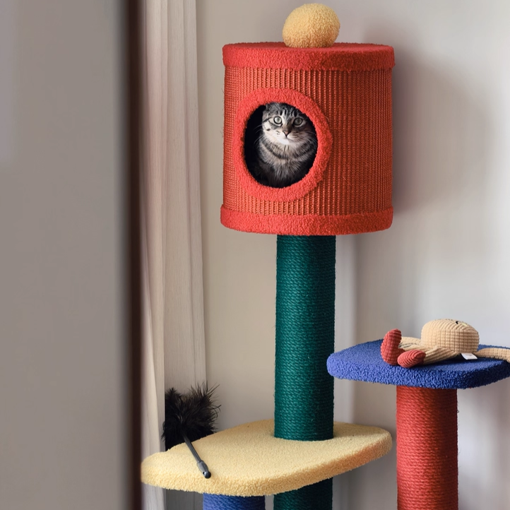 Inject a burst of "Dopamine Decor" into your home with The Prism Pivot, a creative modern cat tree that reimagines the traditional scratching post as a piece of vibrant pop art. Designed with a sleek, space-saving rectangular silhouette, this tower is available in a curated palette of Electric Blue, Jungle Green, Crimson Red, and Canary Yellow, making it a bold statement piece for any fashion-forward living room or bedroom. By combining high-impact color with a minimalist form, it serves as the ultimate "Small-Space Hero," providing your feline with a dedicated vertical playground without cluttering your modern North American interior.