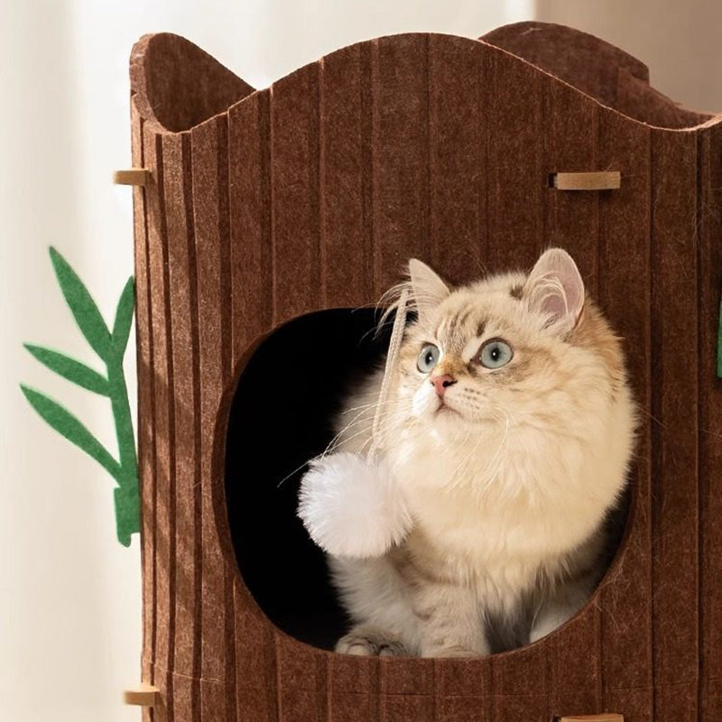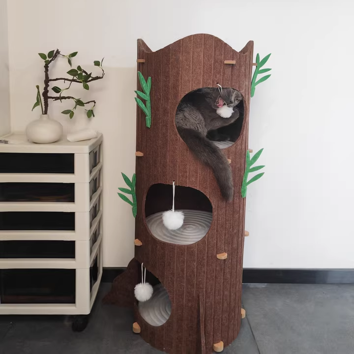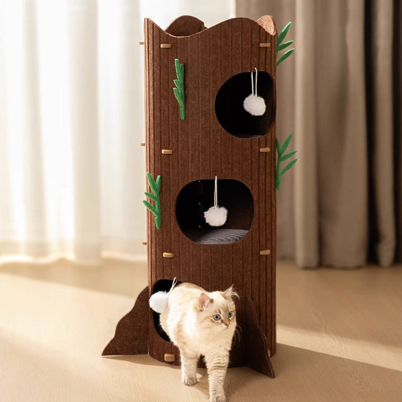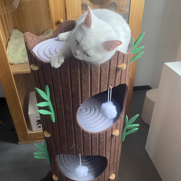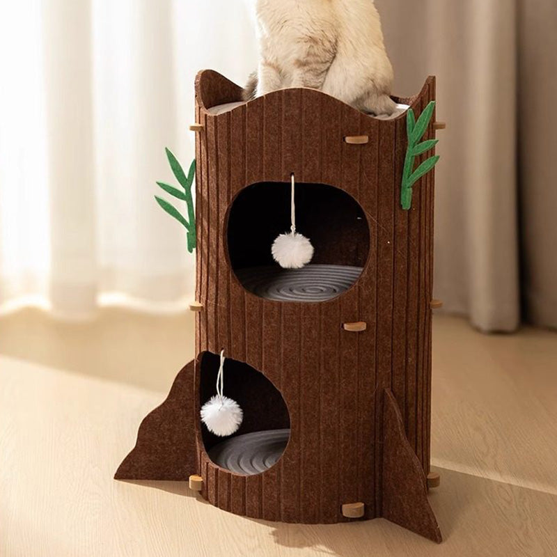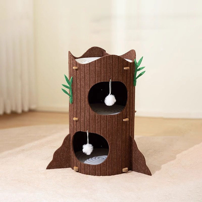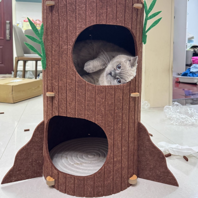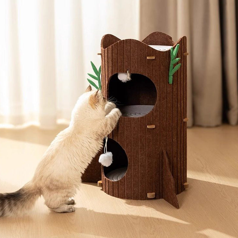Engineered for the high-energy demands of multi-cat households, The Alpine Grove prioritizes "Rock-Solid" stability within a space-saving footprint. Forged from furniture-grade MDF and lined with premium, high-density industrial felt, this condo provides a therapeutic, non-slip texture that cats instinctively love to touch. Designed to accommodate 1 to 3 cats (up to 10 kg / 22 lbs), the reinforced circular frame ensures a vibration-free experience for active pouncers and deep-sleepers alike. This is the premier choice for shoppers seeking aesthetic tree-stump cat condos, modern wood-style cat hideaways, multi-level cylindrical pet furniture, and sturdy, space-saving cat towers for living rooms.