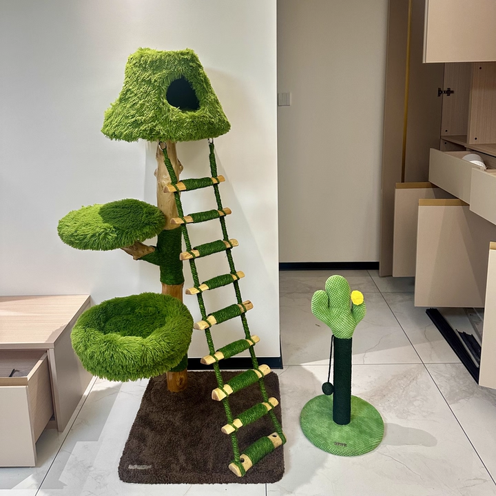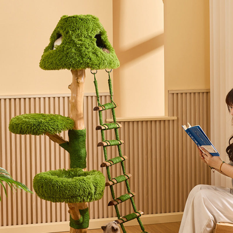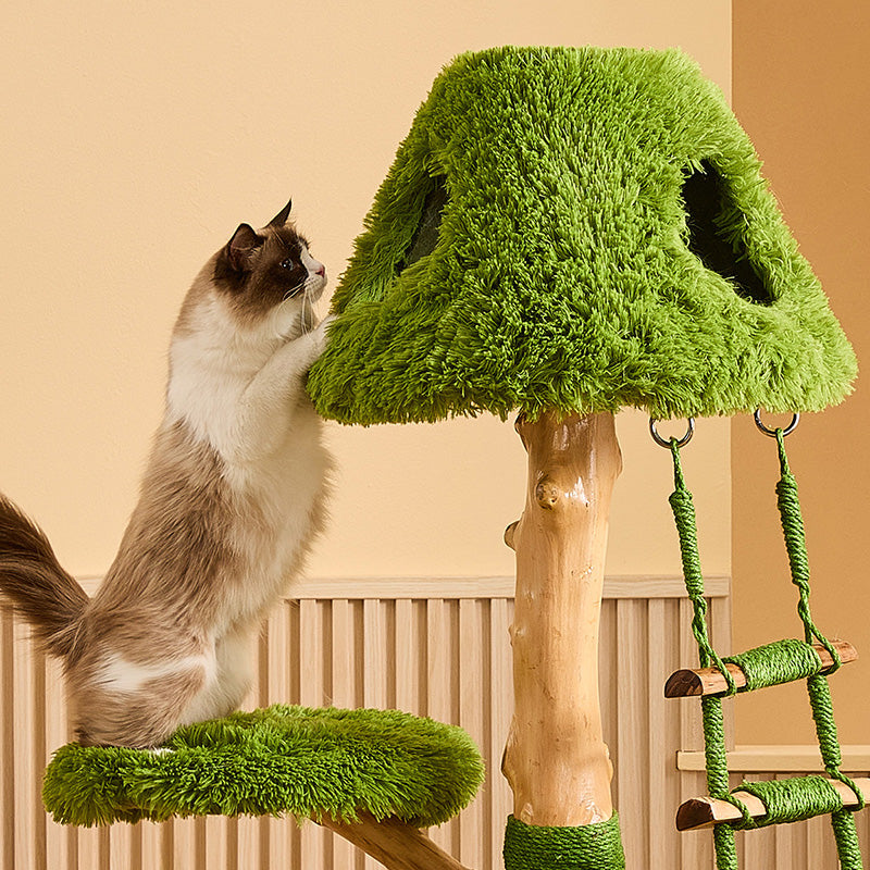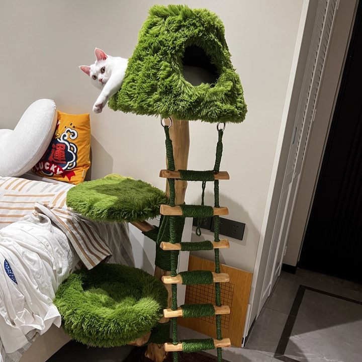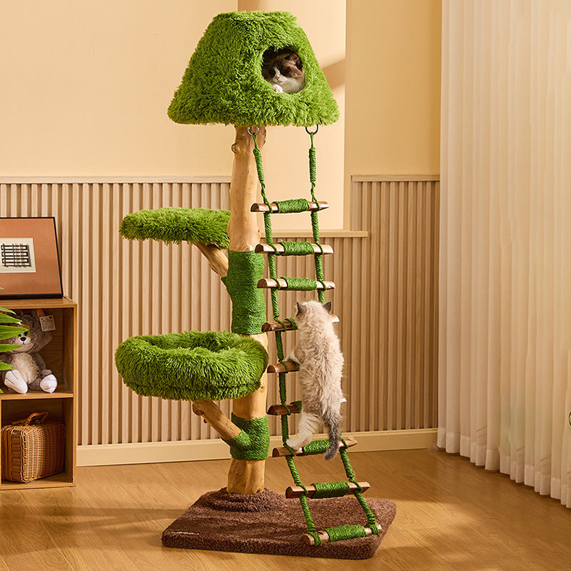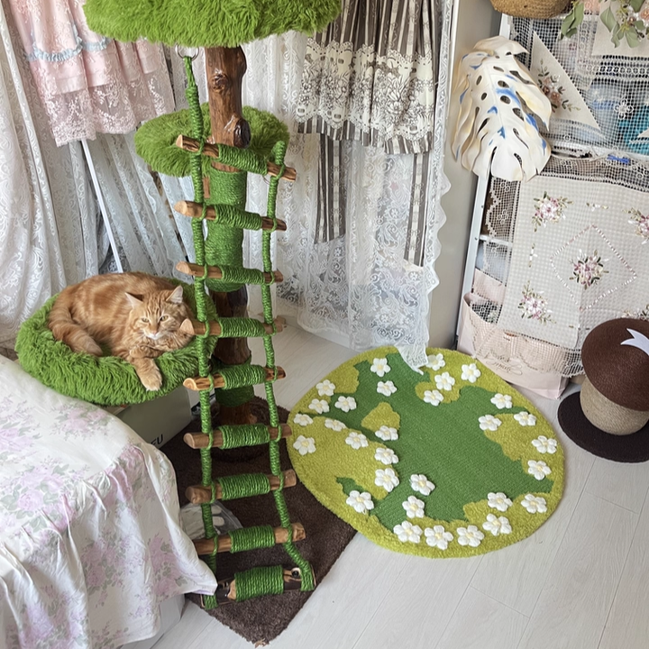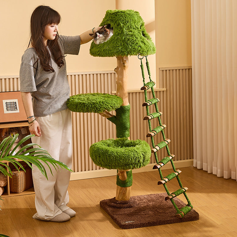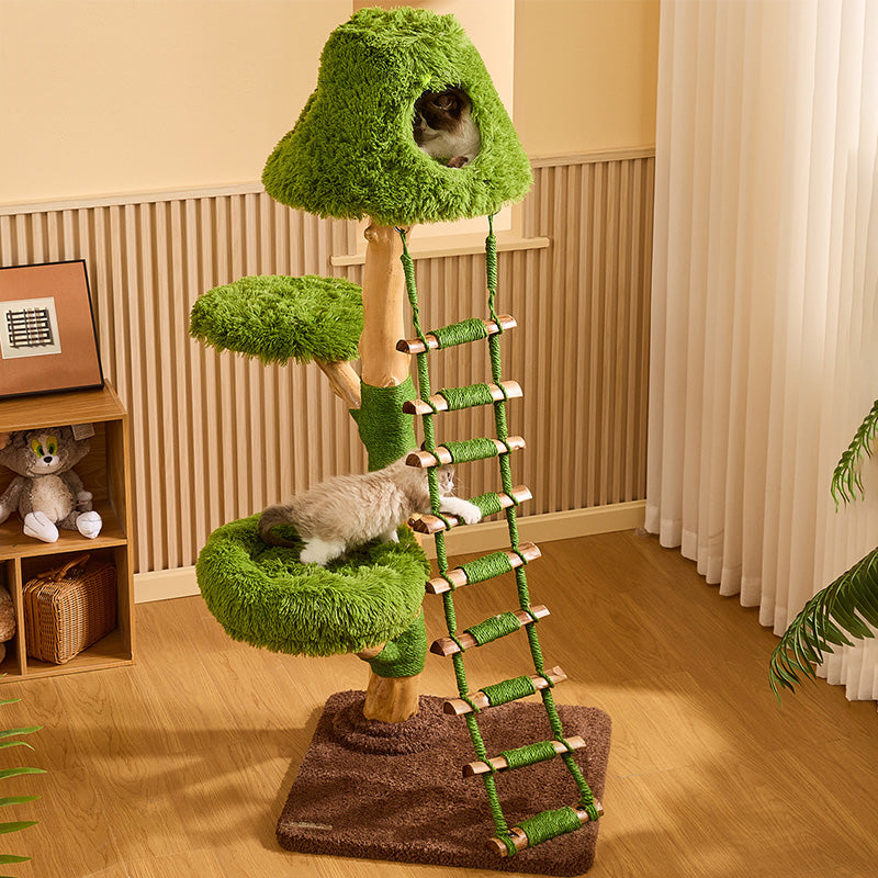 Engineered for the rigorous demands of multi-cat households, The Everglade Ladder is a masterpiece of "Rock-Solid" structural integrity. Moving away from flimsy alternatives, this tower is built with reinforced solid wood supports, providing a heavy-duty foundation that prevents wobbling even during high-speed "midnight zoomies." Each structural trunk is meticulously hand-wrapped in industrial-strength natural sisal, providing a 360-degree scratching circuit that effectively redirects claws away from your designer furniture. Topped with "Cloud-Soft" luxury plush platforms, it ensures every landing is gentle and every nap is restorative. This is the premier choice for shoppers seeking creative tree-style cat furniture, solid wood ladder climbers, multi-level nature-themed cat trees, and sturdy scratching towers for active breeds.