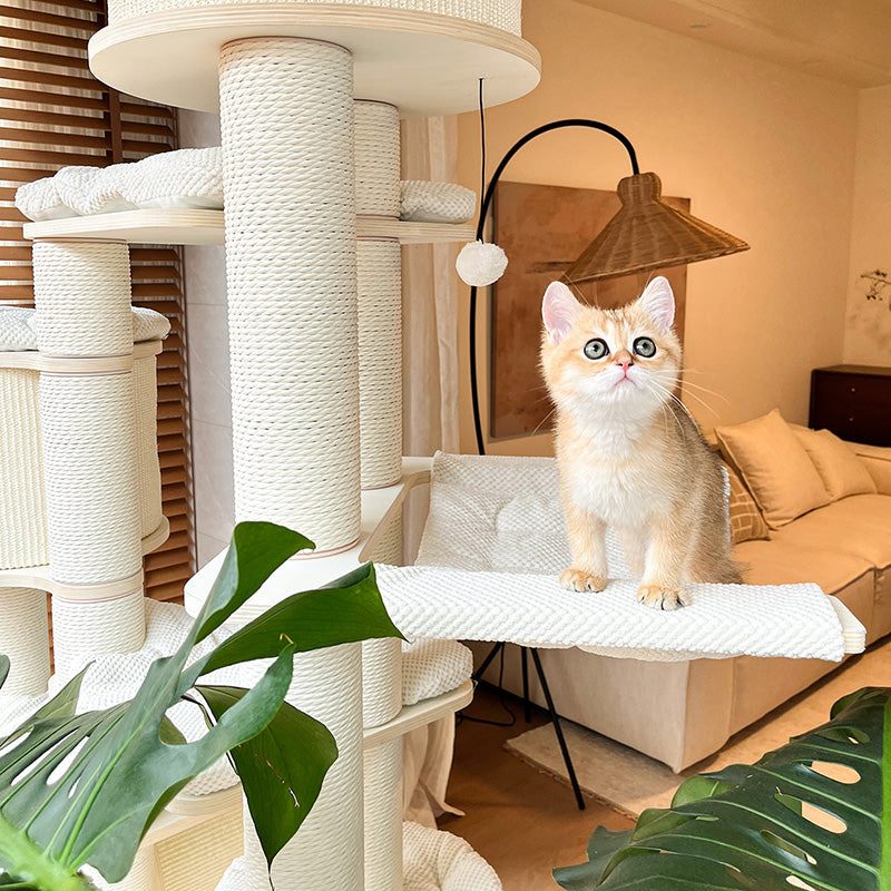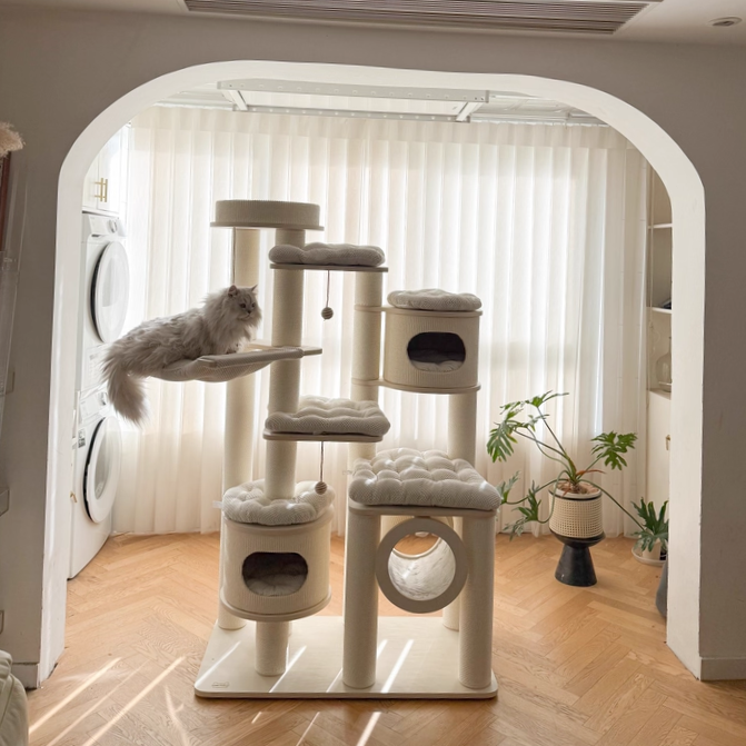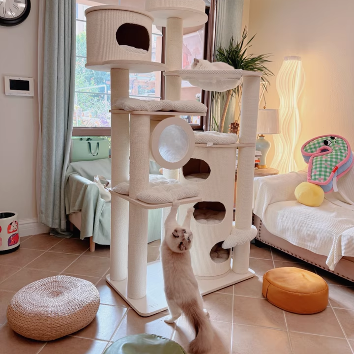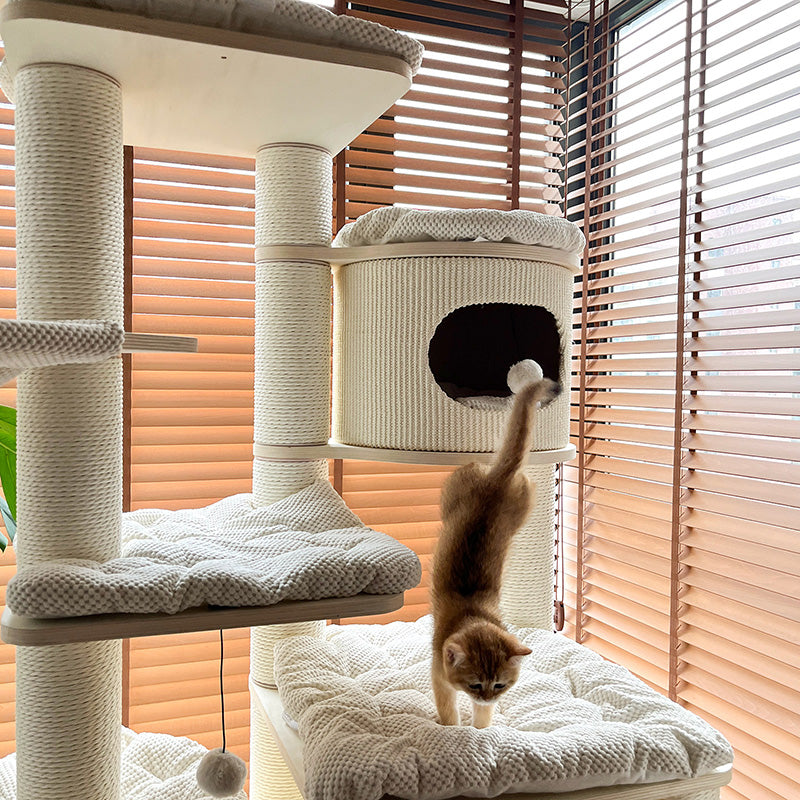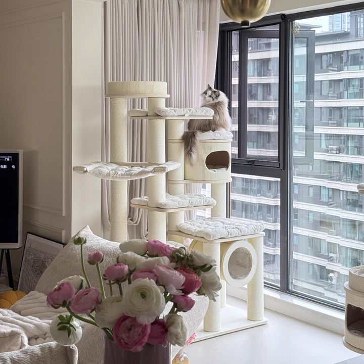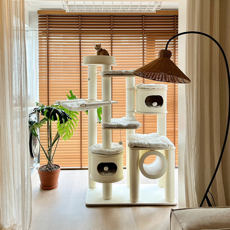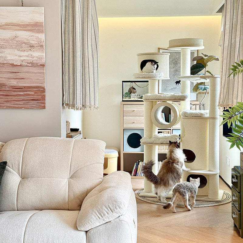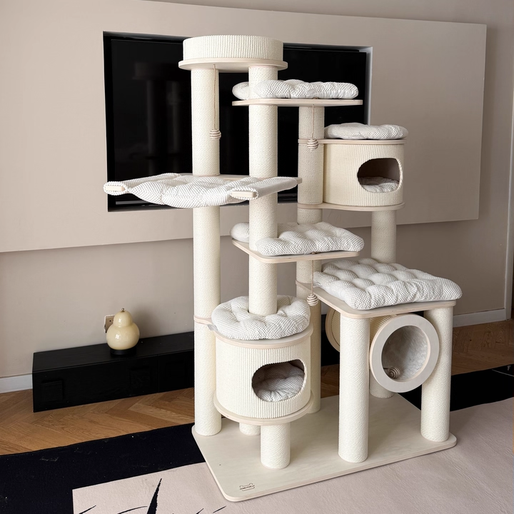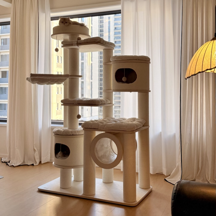Redefine your home’s vertical horizon with The Sky-Rise Manor, an elite 7-level cat tree tower engineered for the ultimate high-altitude lifestyle. Designed as a "Vertical Superhighway," this masterpiece features a sophisticated Beige and White palette that blends seamlessly into "Modern Organic" or "Scandi-Chic" North American interiors. Moving away from flimsy, one-size-fits-all towers, this estate is meticulously crafted from multi-layer solid wood and upholstered in premium, high-texture corduroy. Its soaring seven-story architecture provides a diverse landscape of staggered observation decks, private napping zones, and high-speed climbing paths, satisfying your cat’s primal instinct to dominate the "High-Ground" while elevating your home decor.