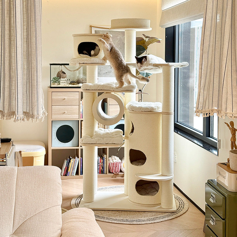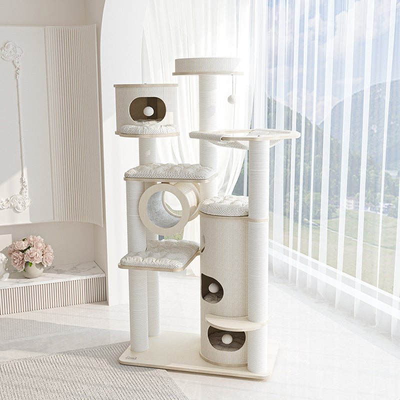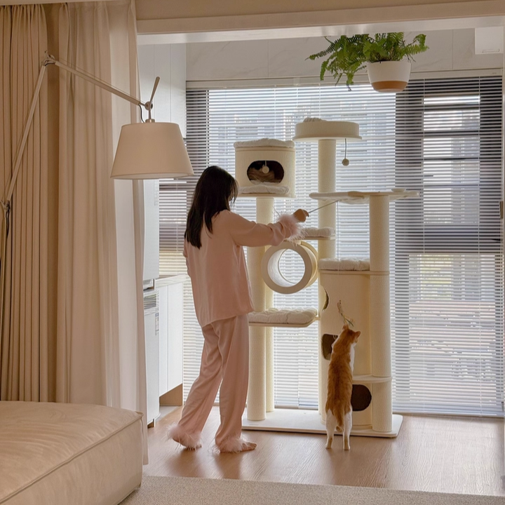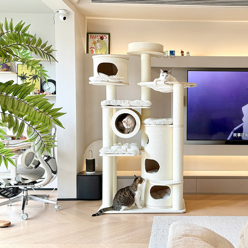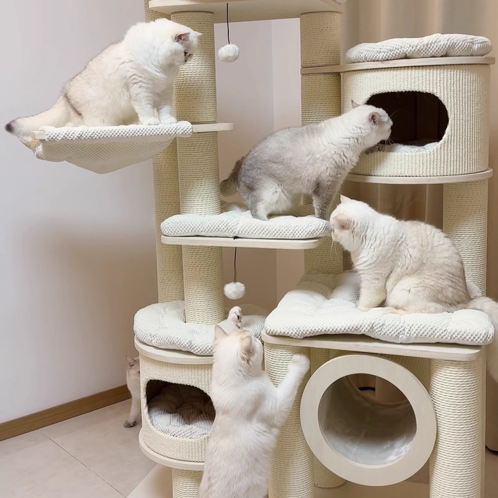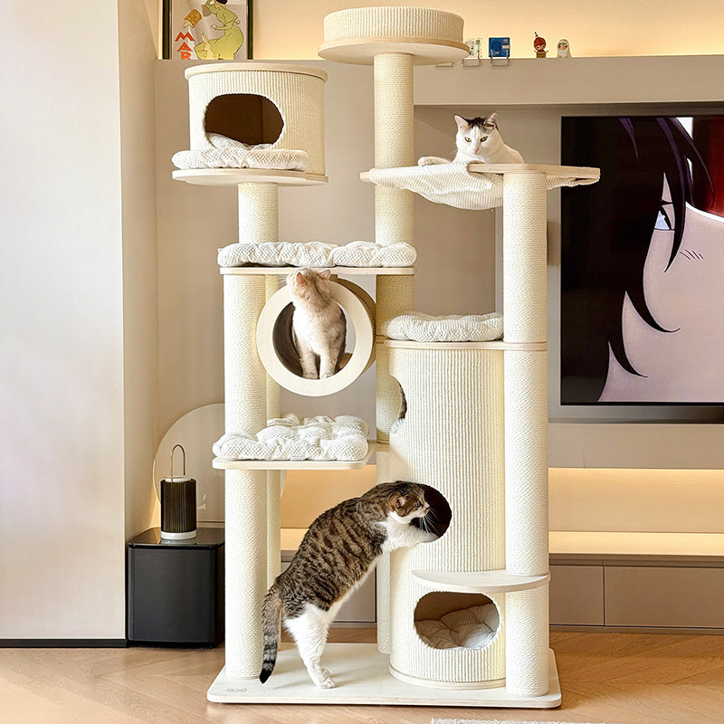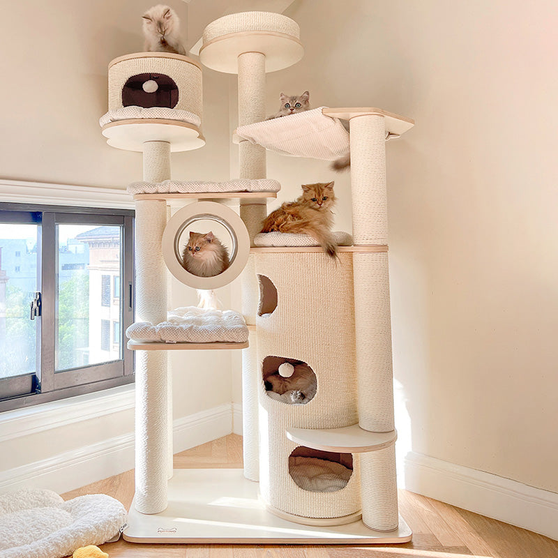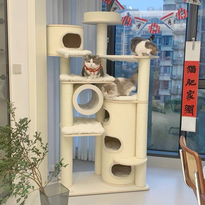 Redefine your home’s vertical horizon with The Sky-Rise Manor, an elite 7-level cat tree tower engineered for the ultimate high-altitude lifestyle. Designed as a "Vertical Superhighway," this masterpiece features a sophisticated Beige and White palette that blends seamlessly into "Modern Organic" or "Scandi-Chic" North American interiors. Moving away from flimsy, one-size-fits-all towers, this estate is meticulously crafted from multi-layer solid wood and upholstered in premium, high-texture corduroy. Its soaring seven-story architecture provides a diverse landscape of staggered observation decks, private napping zones, and high-speed climbing paths, satisfying your cat’s primal instinct to dominate the "High-Ground" while elevating your home decor.