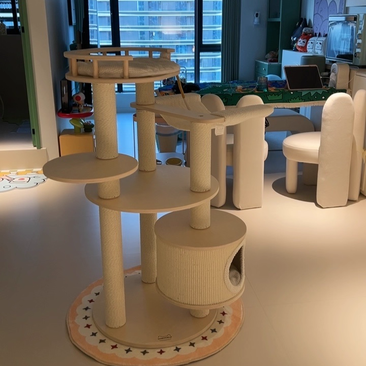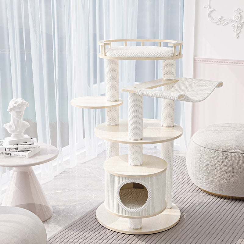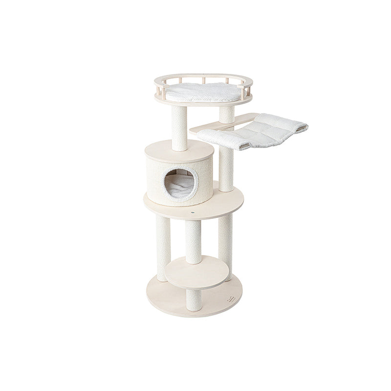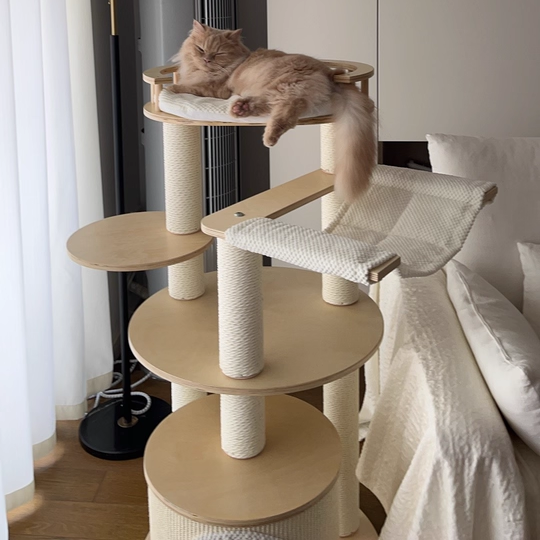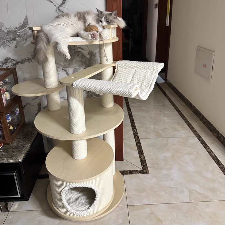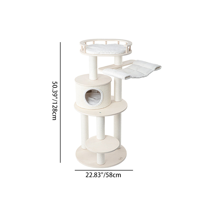 Take your feline’s vertical territory to new heights with The Cloud-Reach Estate, a premier 5-level round cat tree engineered for the ultimate high-altitude lifestyle. Designed to thrive in the modern North American "Multi-Cat Household," this tower features a sophisticated Natural Wood and Cream White palette that seamlessly integrates into "Scandi-Minimalist" or "Modern Farmhouse" decors. The staggered, sky-rise architecture offers an exhilarating climbing path, leading to private "safe-haven" hideaways and panoramic observation decks. This is more than a cat tree; it’s a piece of furniture-grade architecture that transforms your living room or bedroom into a "Biophilic" playground where every cat finds their perfect perch.