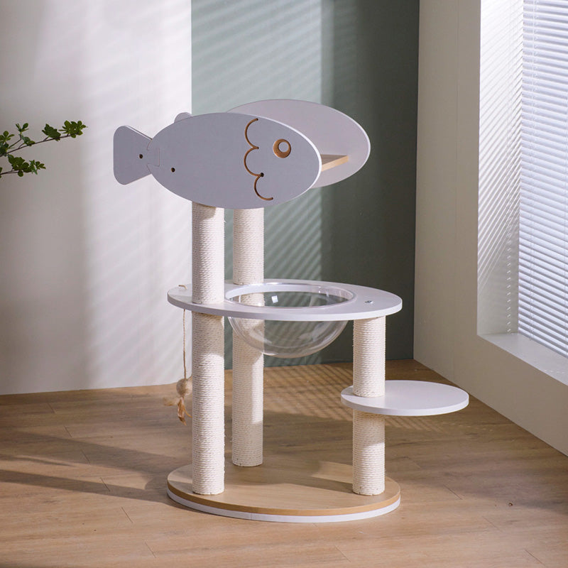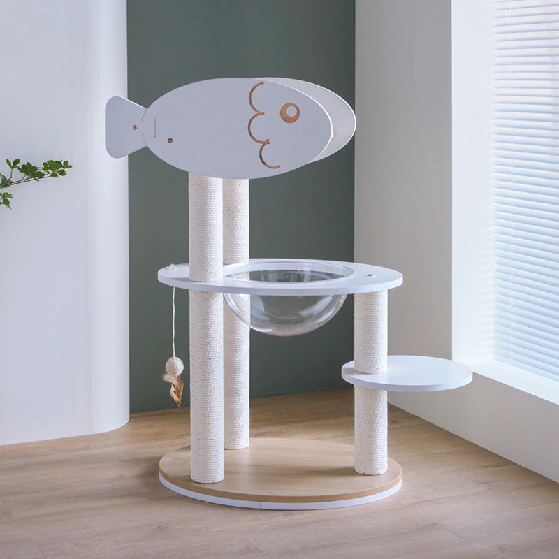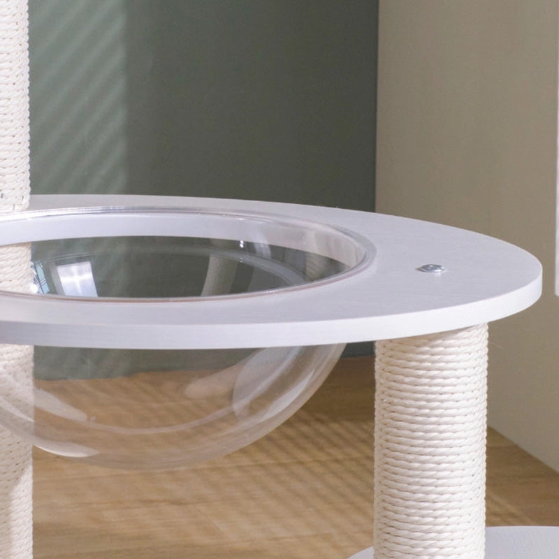 Elevate your feline's view with The Lunar Lookout, a masterpiece of Nordic-inspired pet architecture that brings "Future-Modern" elegance to your home. Moving beyond the cluttered look of traditional carpet towers, this sleek 2-tier climber features premium multi-layer solid wood and a stunning, high-definition acrylic space capsule. The crystal-clear hemispherical perch satisfies your cat’s primal instinct for high-ground observation while providing you with an adorable "under-paw" view. Finished in a luminous Natural Wood and Crisp White palette, it acts as a sophisticated home accent that perfectly aligns with "Japandi," "Organic Modern," and "Scandi-Minimalist" North American interiors.