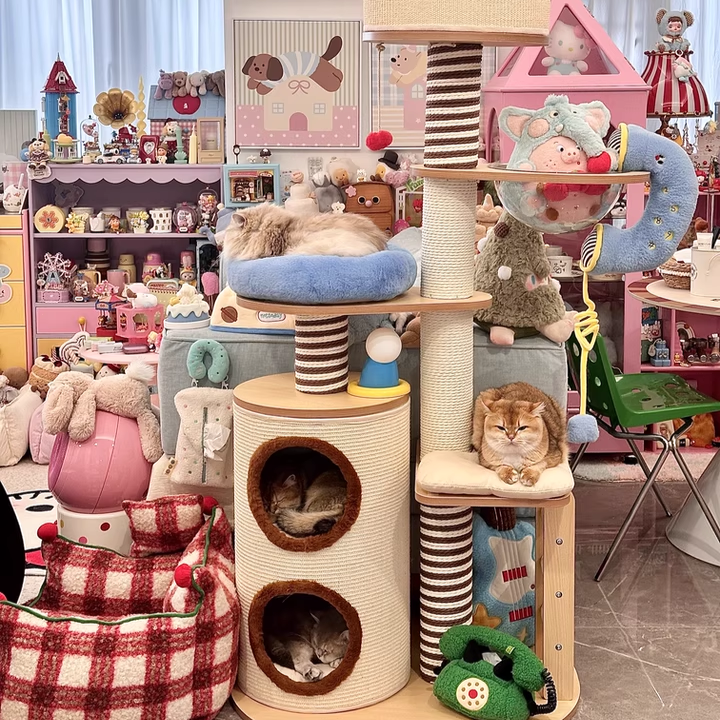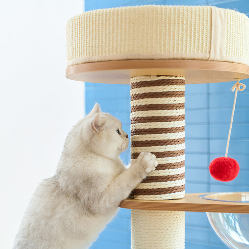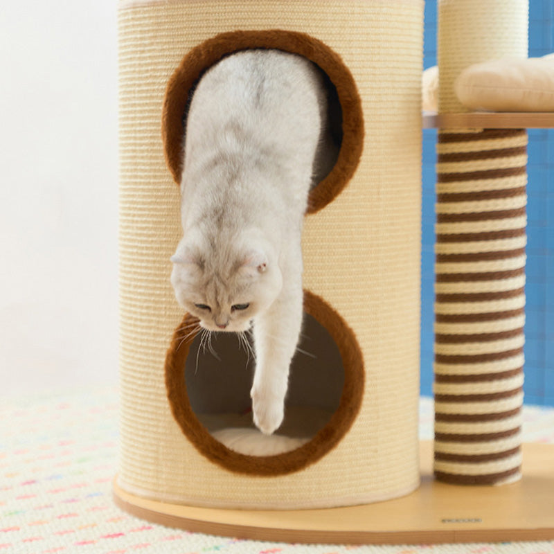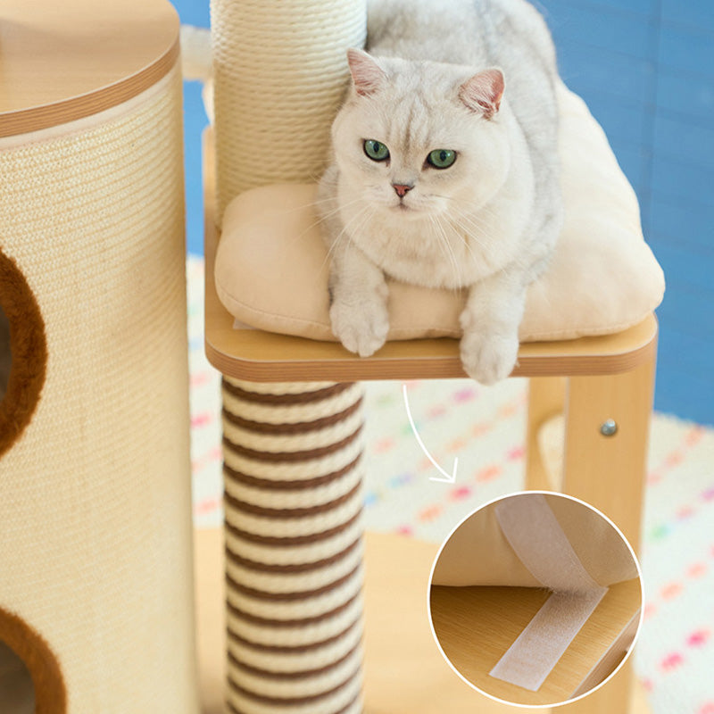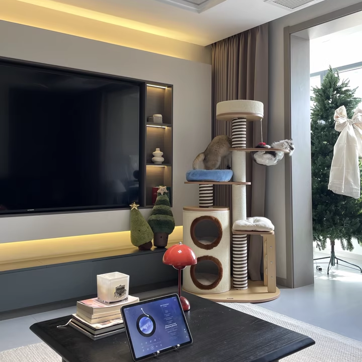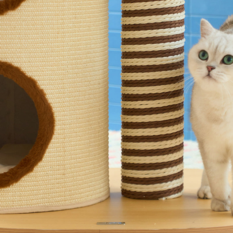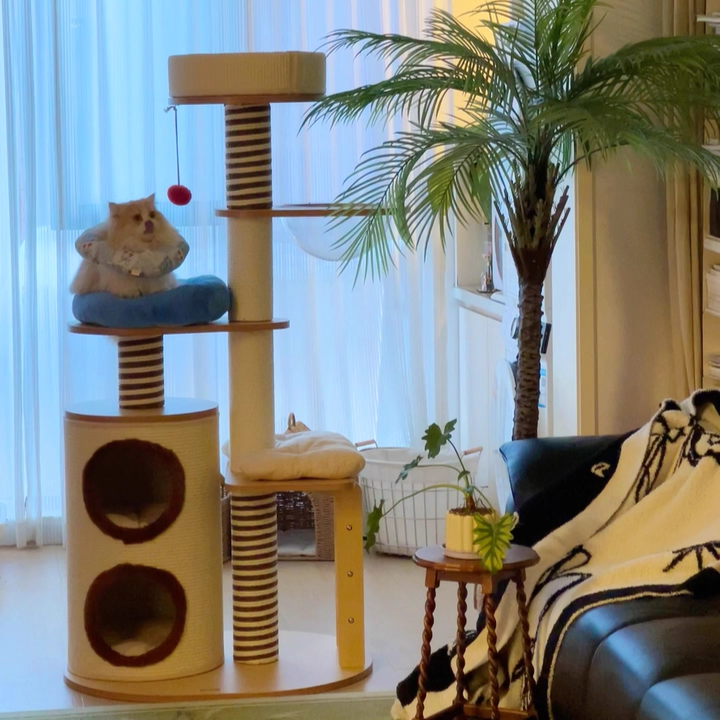 Engineered for the dynamic needs of multi-cat households, The Skyline Retreat is a powerhouse of "Rock-Solid" stability. Designed to accommodate 1 to 5 cats with a robust weight capacity of up to 30 kg (66 lbs), the reinforced wooden framework ensures a vibration-free experience during high-energy play. Each structural pillar is meticulously hand-wrapped in industrial-strength paper rope, providing a sleek, high-friction scratching surface that is gentle on paws yet rugged enough to safeguard your designer furniture. Topped with "Cloud-Soft" luxury plush, this is the premier choice for shoppers seeking modern wood cat trees, multi-level cat climbers for small spaces, sturdy multi-cat towers, and aesthetic vertical pet furniture.