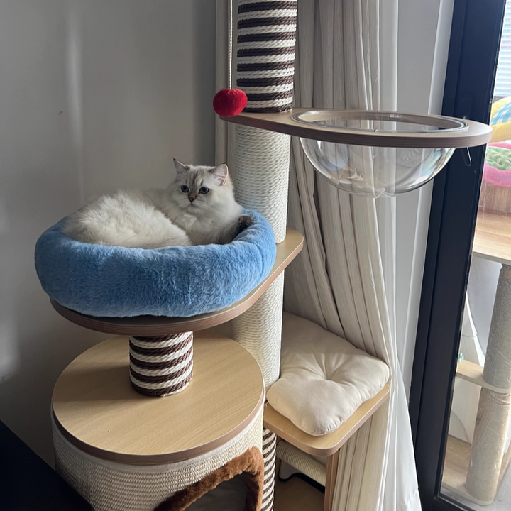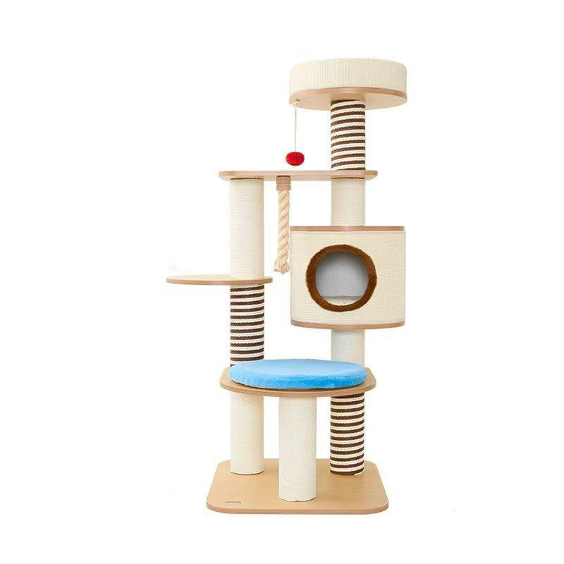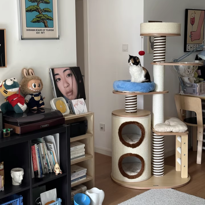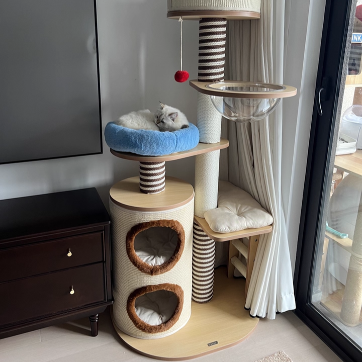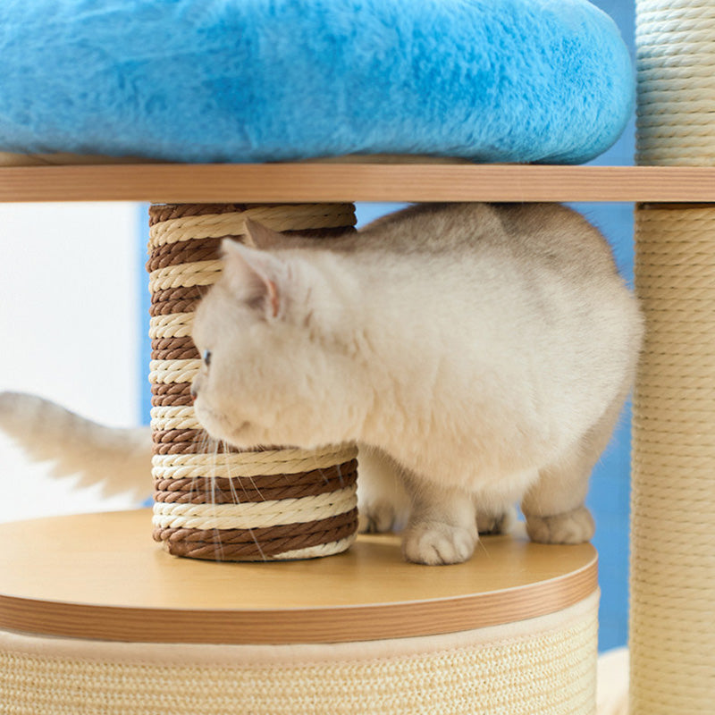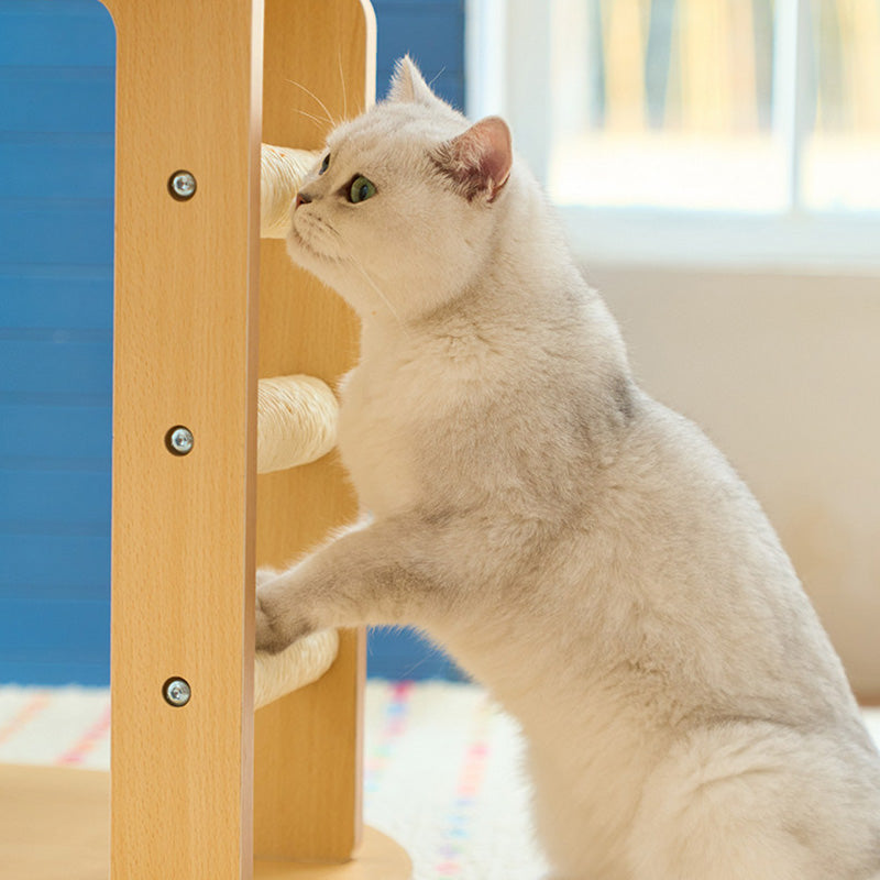 Elevate your feline's lifestyle with The Skyline Retreat, a premium 5-level Nordic-style cat tree that perfectly balances architectural elegance with feline-centric design. Moving away from the bulky, carpet-heavy towers of the past, this unit features furniture-grade wooden panels and a sleek vertical silhouette that saves precious floor space while maximizing "Sky-Rise" territory. Available in a curated palette of Soft Beige, Coastal Blue, and Natural Wood, it serves as a sophisticated home accent that blends seamlessly with "Modern Organic" and "Scandi-Minimalist" North American interiors. Whether your cats are racing to the summit or napping on the staggered platforms, this tower turns your living room into a high-end adventure zone.