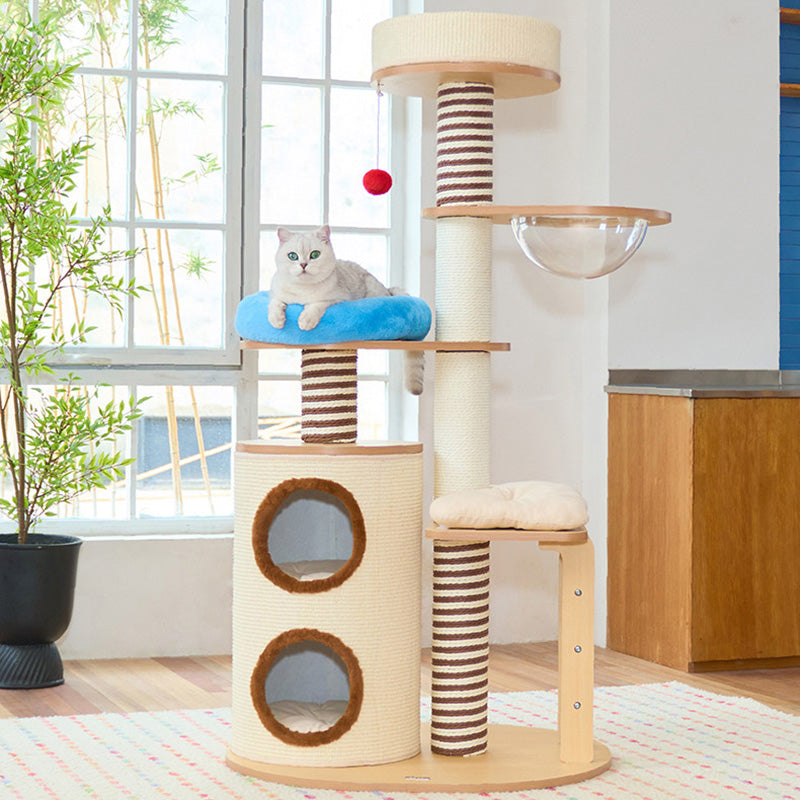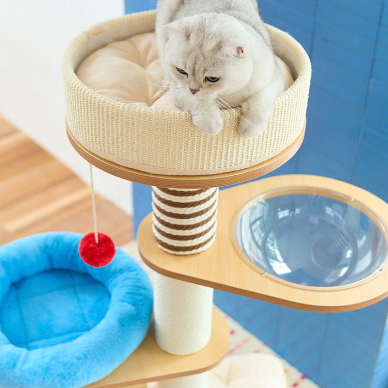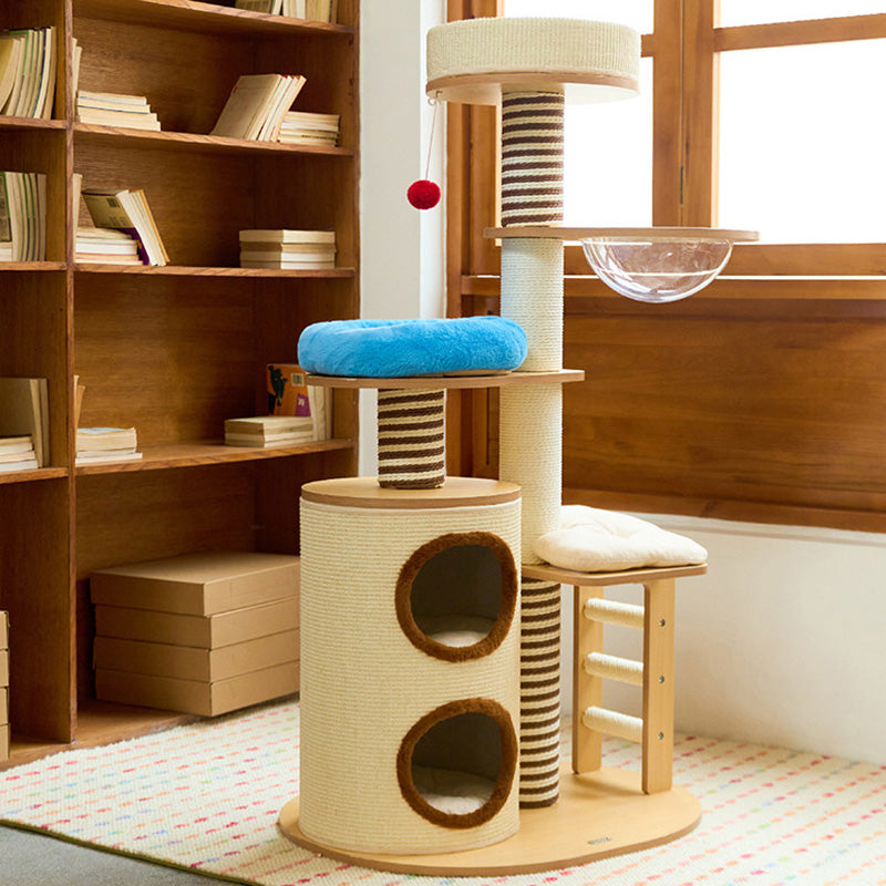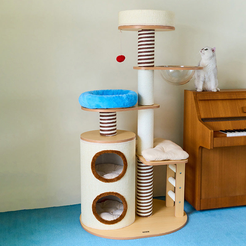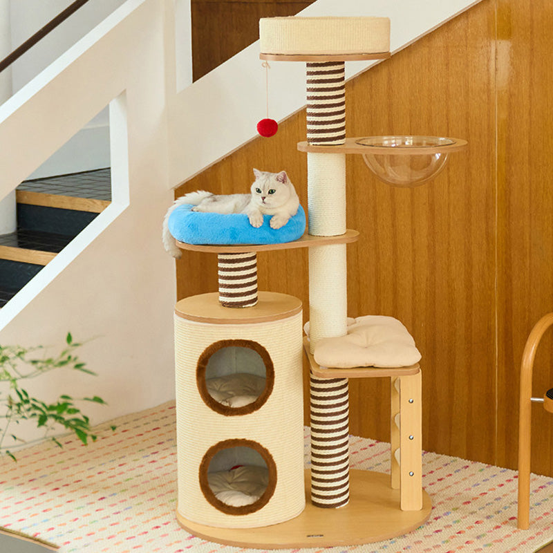 Elevate your feline's lifestyle with The Skyline Retreat, a premium 5-level Nordic-style cat tree that perfectly balances architectural elegance with feline-centric design. Moving away from the bulky, carpet-heavy towers of the past, this unit features furniture-grade wooden panels and a sleek vertical silhouette that saves precious floor space while maximizing "Sky-Rise" territory. Available in a curated palette of Soft Beige, Coastal Blue, and Natural Wood, it serves as a sophisticated home accent that blends seamlessly with "Modern Organic" and "Scandi-Minimalist" North American interiors. Whether your cats are racing to the summit or napping on the staggered platforms, this tower turns your living room into a high-end adventure zone.
