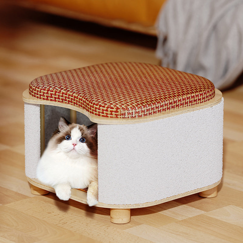 This traditional Chinese–style cat house combines solid wood construction with a breathable rattan mat, offering a cool and comfortable rest space ideal for summer and year-round use. Designed with a two-tier structure, raised base for moisture protection, and a secure enclosed form, it delivers reliable weight support and comes in a warm brown finish that fits naturally into bedroom interiors.