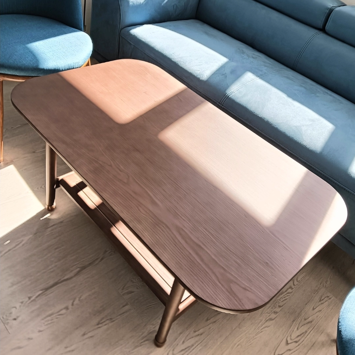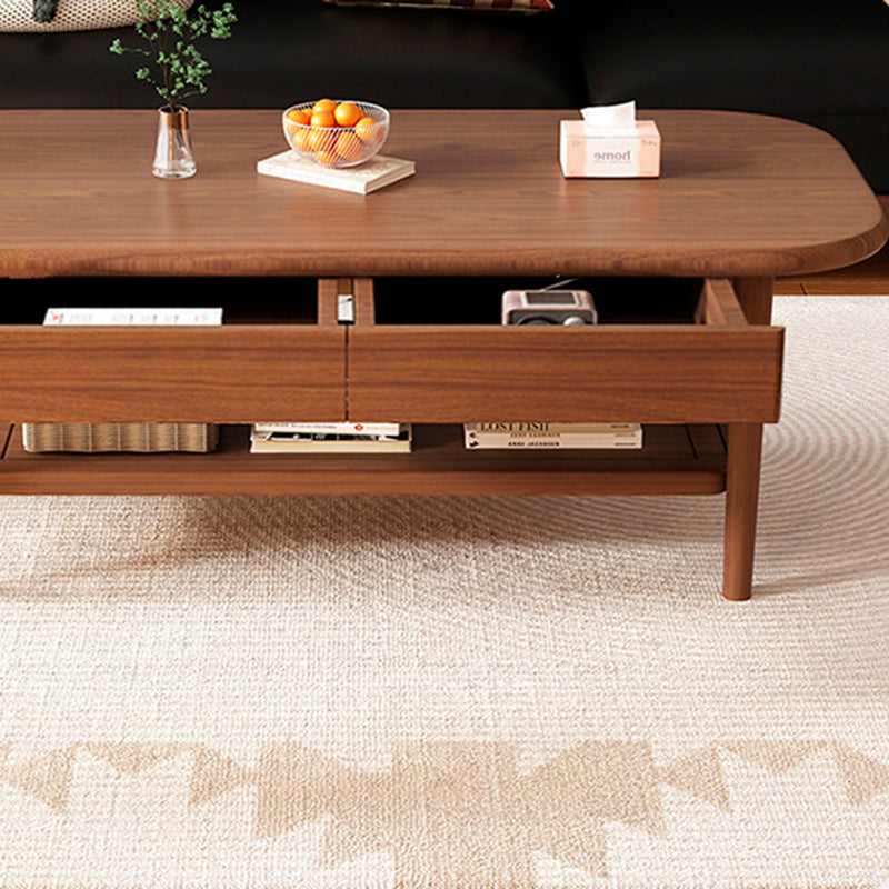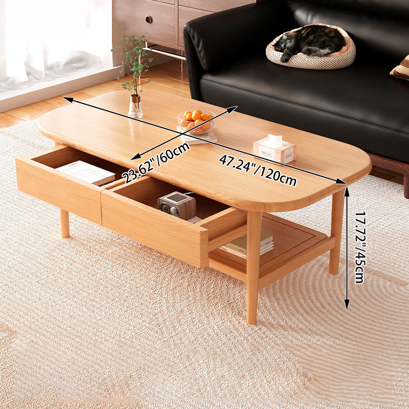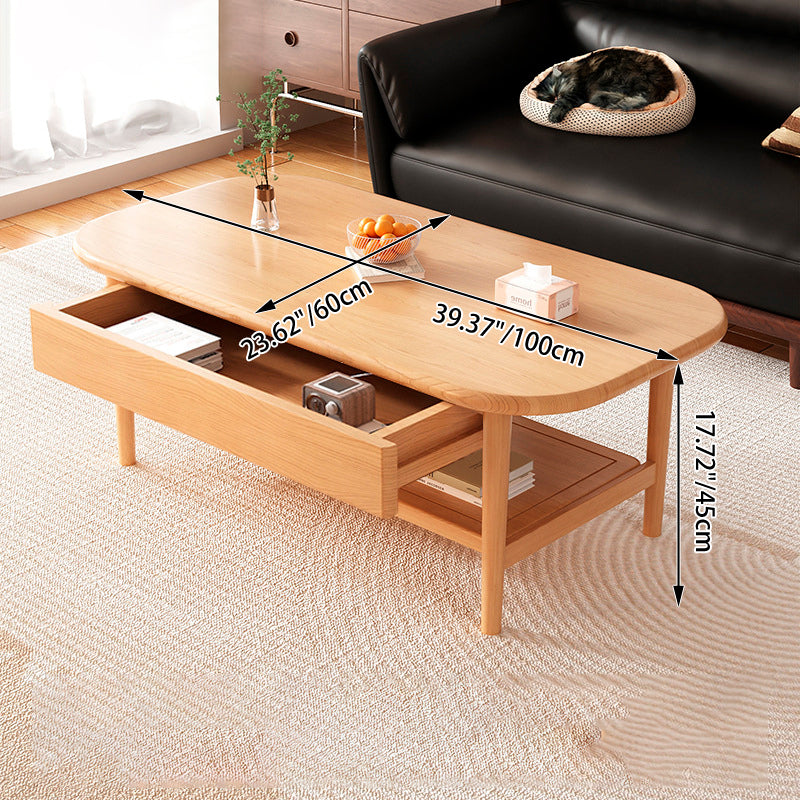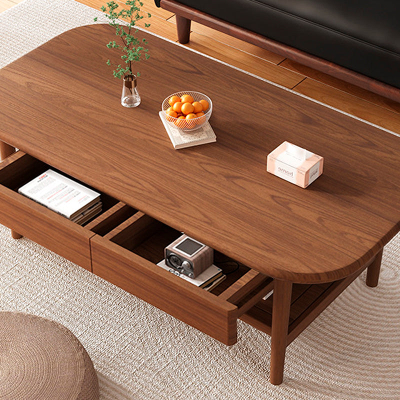 This living room coffee table is crafted from durable rubberwood solid wood, showcasing a rounded rectangular silhouette in warm walnut and natural wood tones. Featuring a 2-tier storage design with strong load-bearing capacity, uniform color, and clear wood grain, it delivers practical storage and timeless Traditional Chinese elegance—ideal for small apartments and modern living rooms.