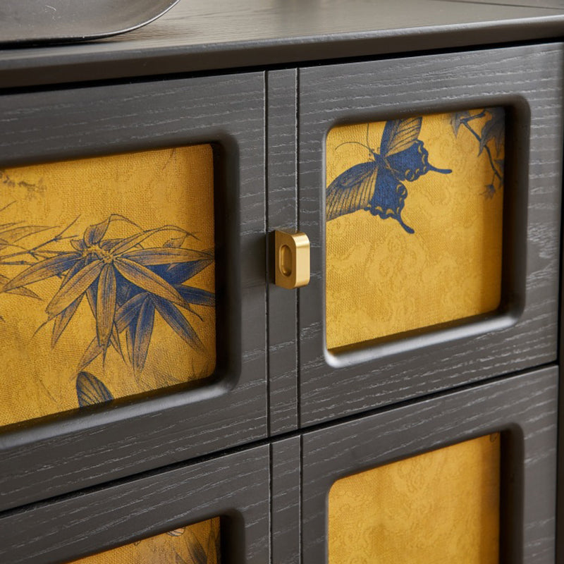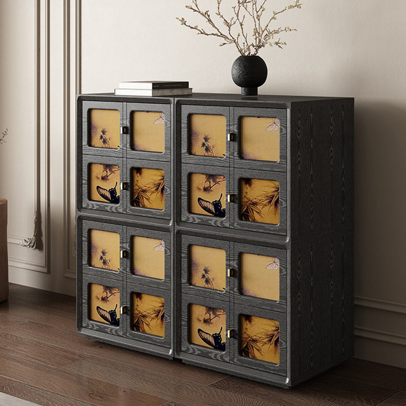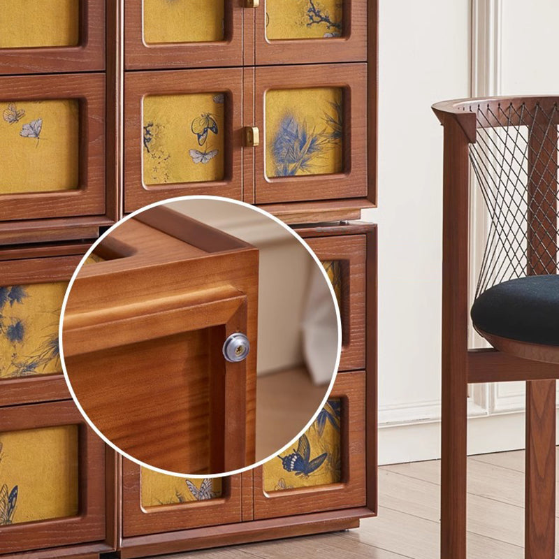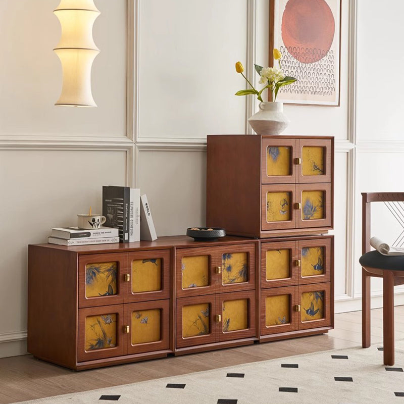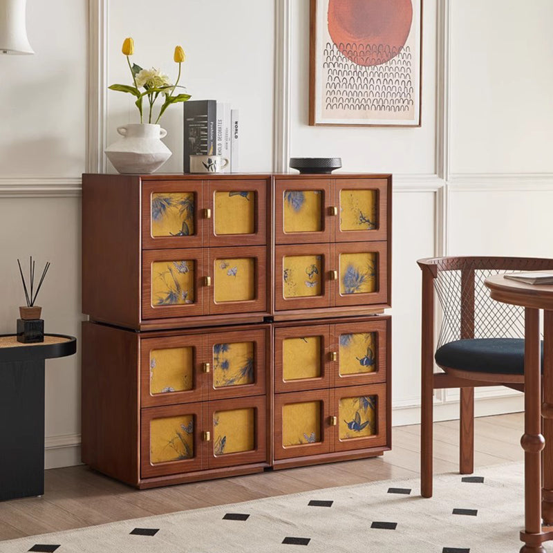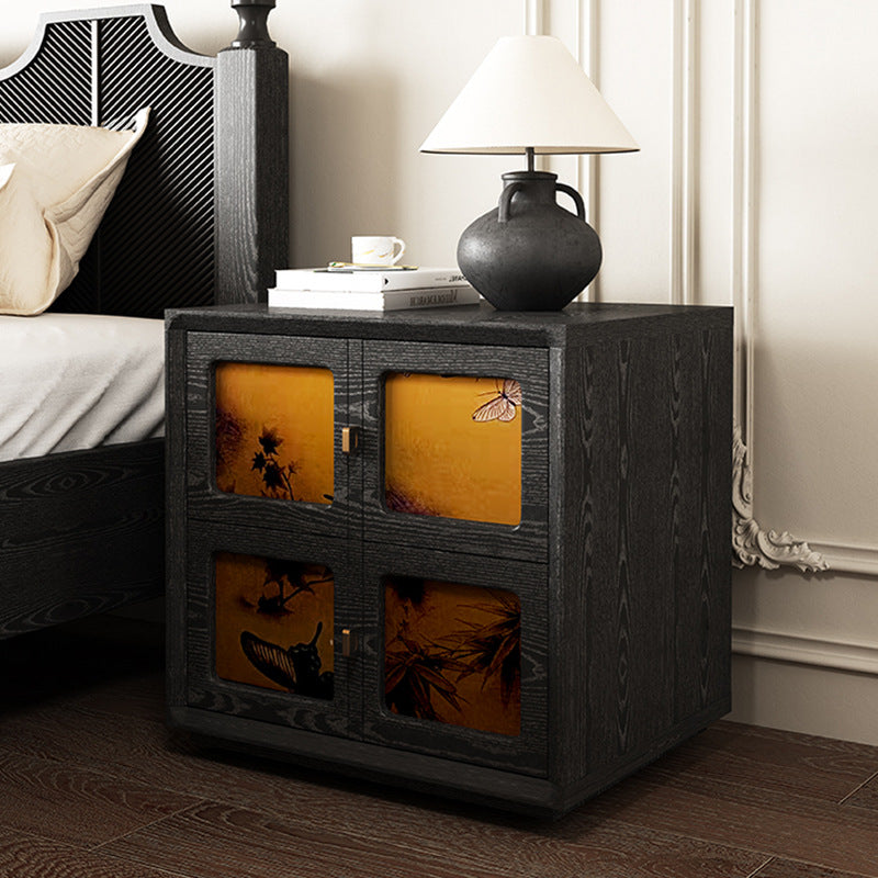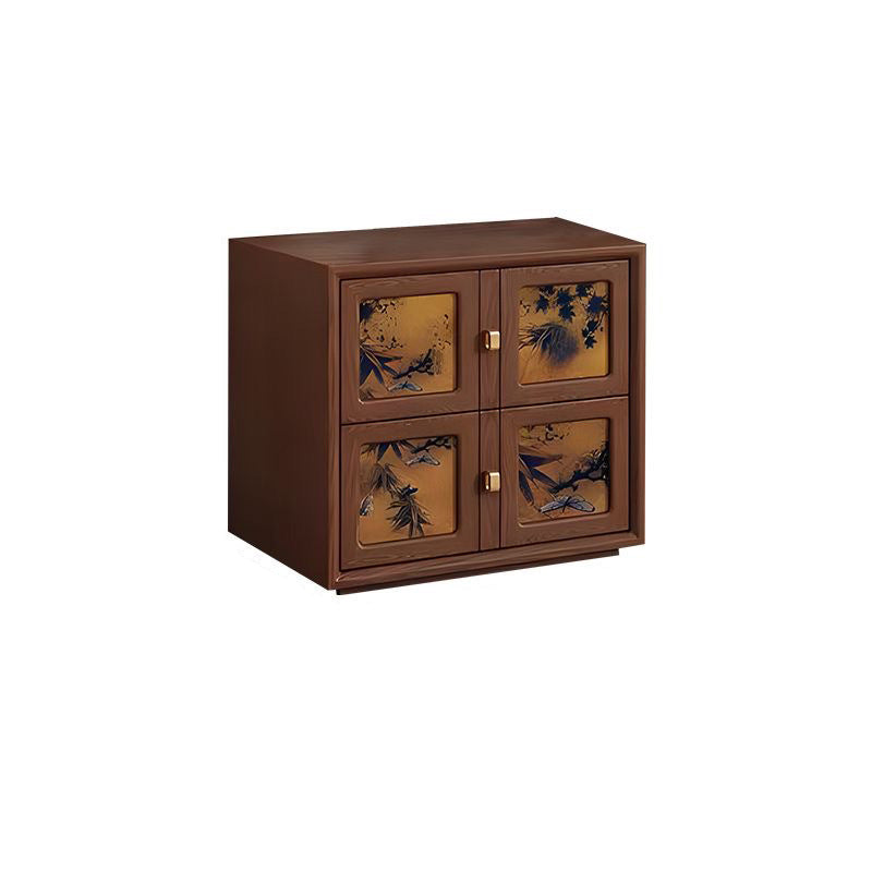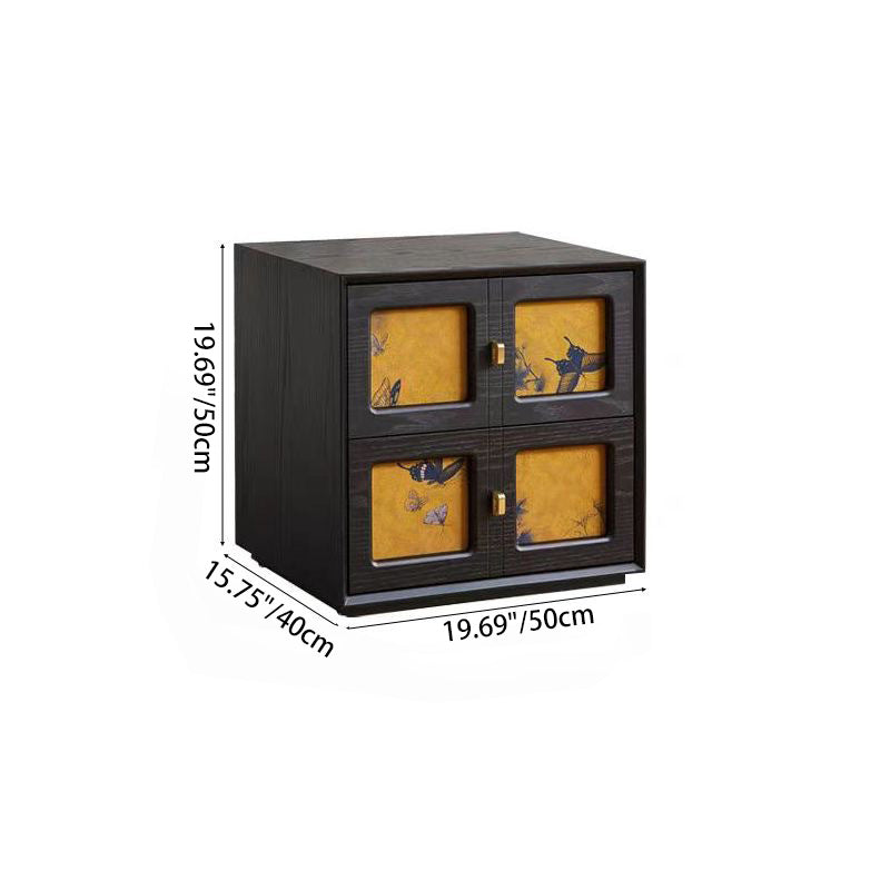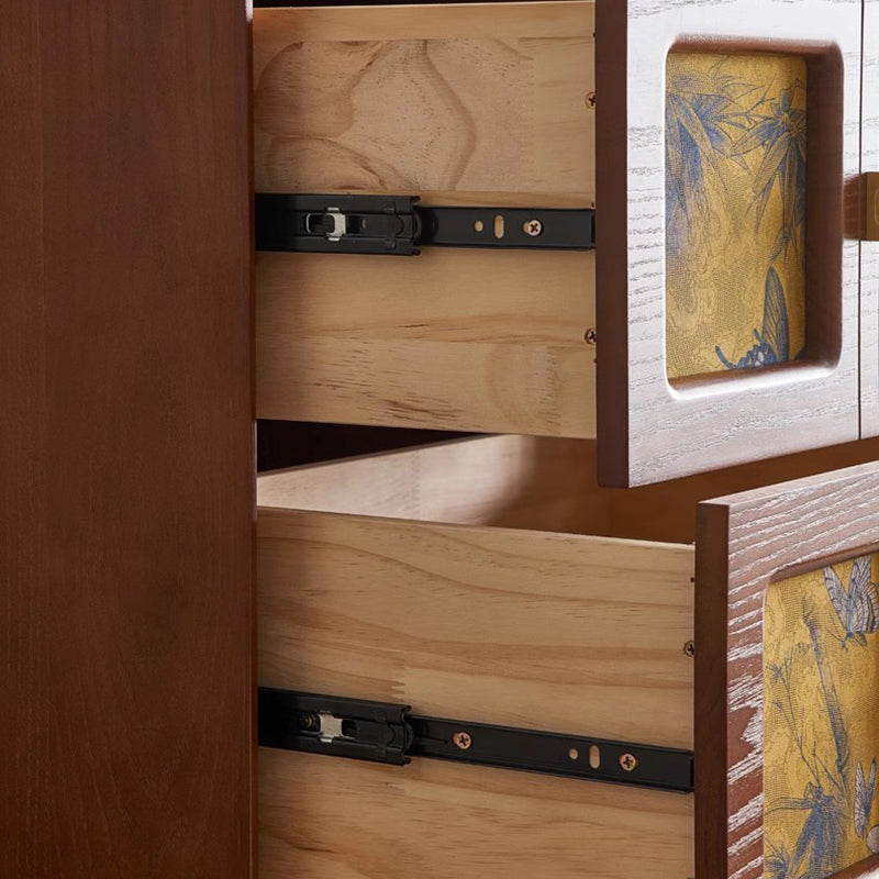 This Traditional Chinese solid wood nightstand features a square patterned design, 2 smooth-glide drawers, and elegant pure brass handles for a refined vintage aesthetic. Available in black and classic vintage tones, it provides stable storage and a timeless look ideal for elevating any bedroom space.