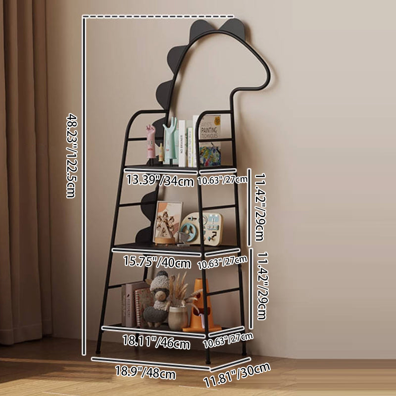 This unique shelf offers a fun yet highly functional organization solution with 3 tiers of large-capacity storage, perfect for neatly housing books, favorite toys, and decorative items. Its open frame design prevents visual clutter while providing easy access. Available in versatile, classic Black and elegant Cream White, this piece is ideal for adding character to bedrooms, study rooms, or family living rooms. Optimized for North American consumers searching for wrought iron creative bookshelves, dinosaur-shaped kids furniture, 3-tier metal storage shelves, and playful organization solutions for contemporary homes.
