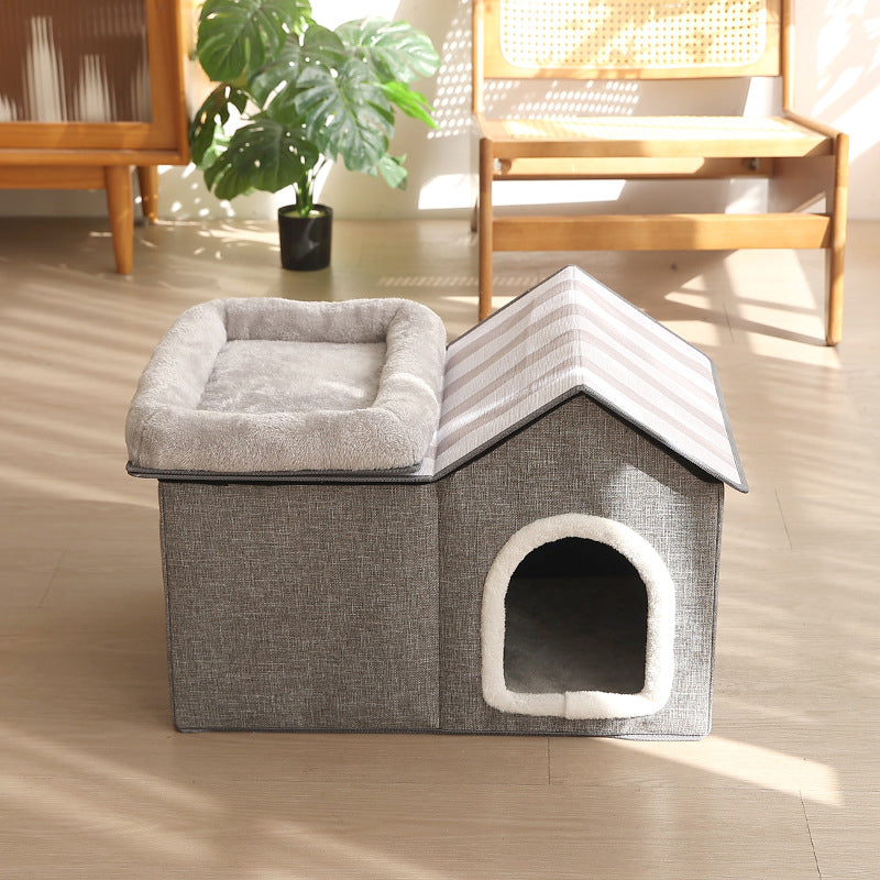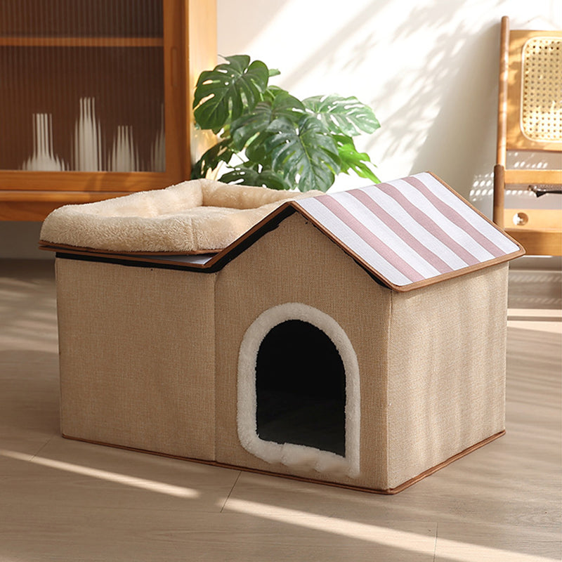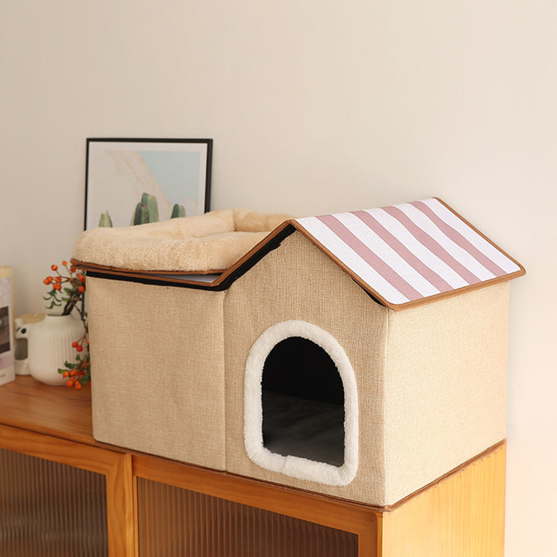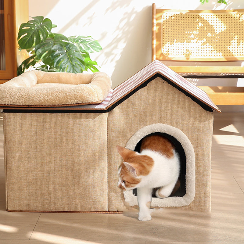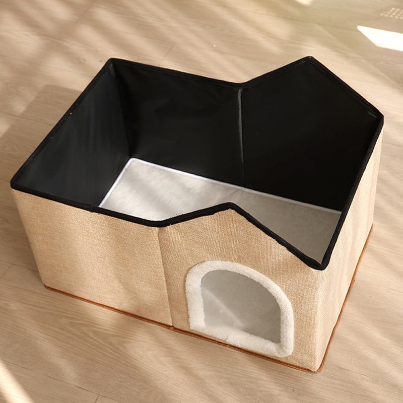 Designed for the modern, style-conscious home, this spacious rectangular cat house is finished in a "neutral beige and gray" palette that blends effortlessly into any living room or bedroom. The all-season design ensures your cat stays warm in the winter and has a structured, breathable retreat in the summer. Combining "industrial-grade durability" with the "hygge" comfort of the North, this multifunctional piece is a must-have for pet owners seeking high-quality furniture that doesn't compromise on style. Optimized for North American consumers searching for modern 2-story cat houses, Scandinavian pet furniture, minimalist cat beds with scratchers, and neutral-toned cat dens.