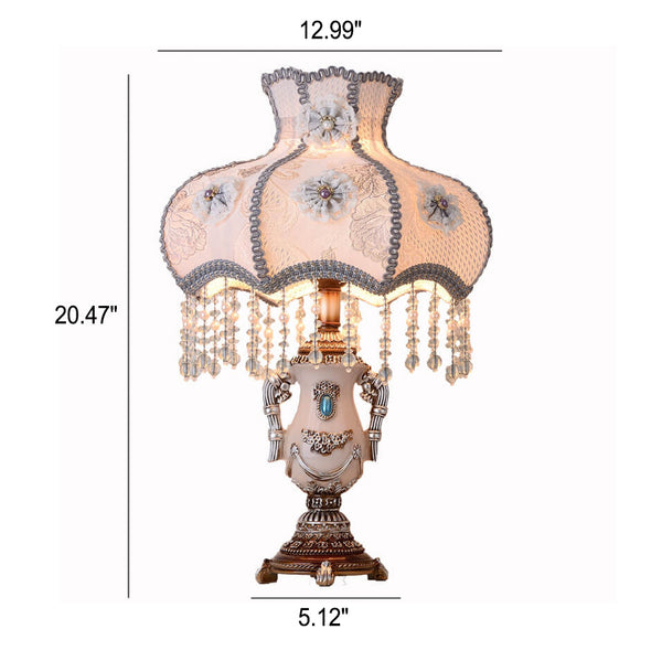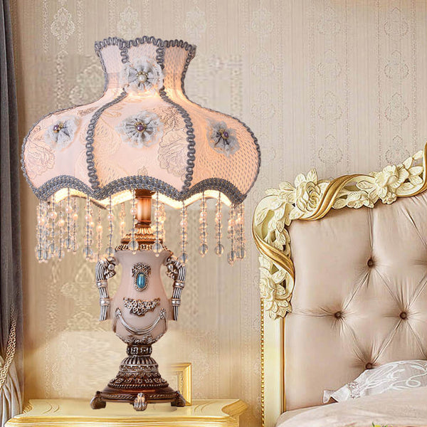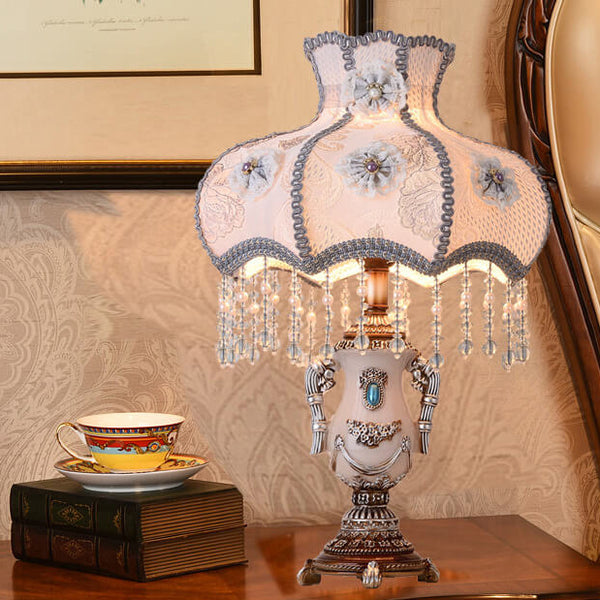 Lámpara de mesa de 1 luz con borla de tela púrpura claro de la Corte Europea