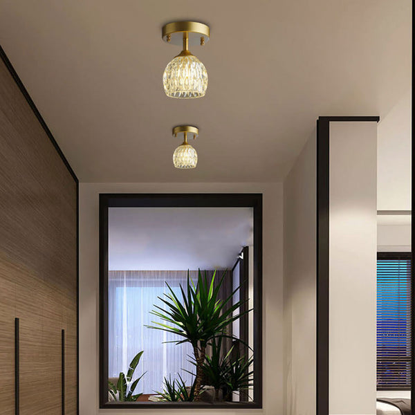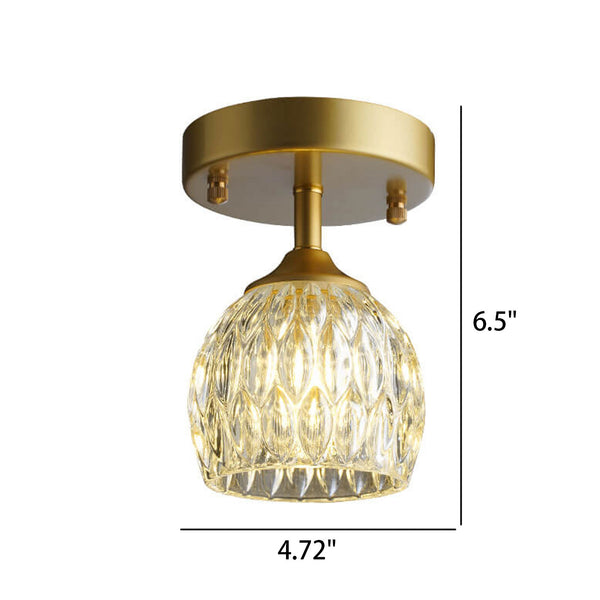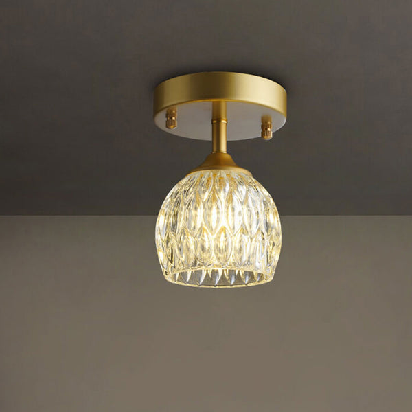 Luz de techo semiempotrada de 1 luz con cúpula de vidrio texturizado nórdico