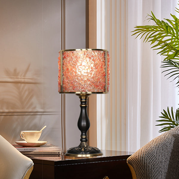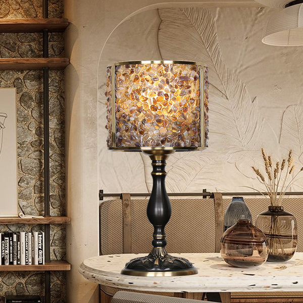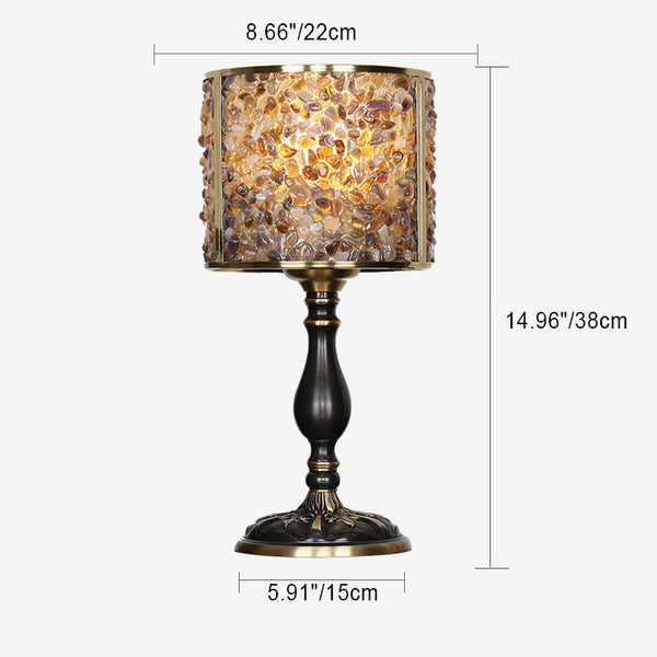 Lámpara de mesa de 1 luz con pantalla de cristal de piedra moderna y base de cobre completo para estudio