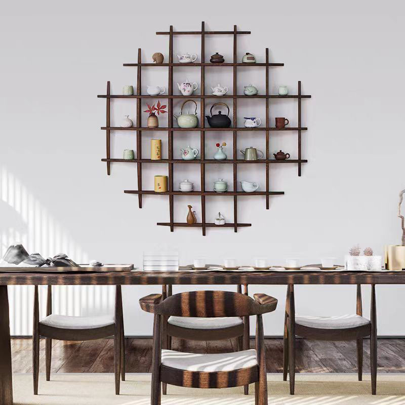 Crafted from premium solid wood, this 7-tier wall-mounted display shelf blends traditional Chinese design with modern elegance. Available in walnut and natural finishes, its curved round frame offers stylish organization for tea sets, collectibles, or home décor, keeping your space neat and refined.