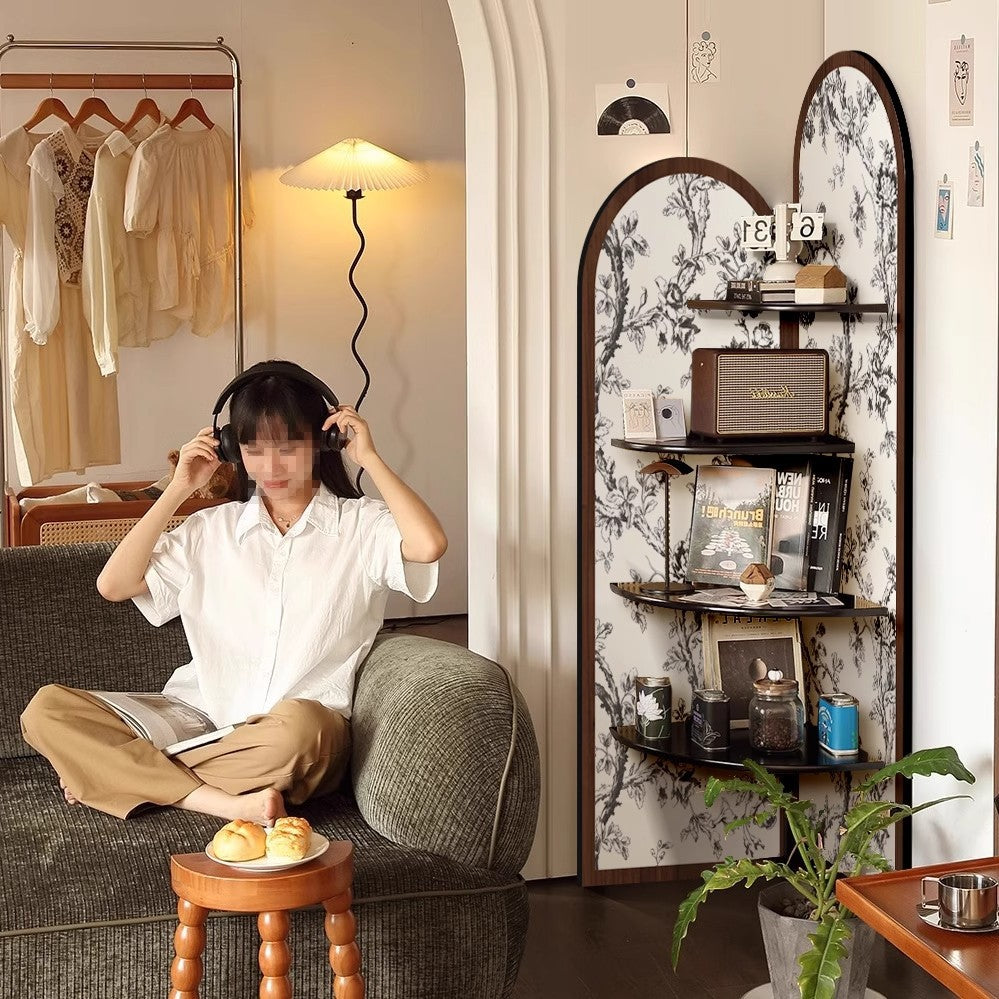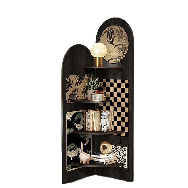 This stylish corner shelf features beautifully printed rattan textures and decorative patterns, delivering the natural woven look with a smooth, durable finish that enhances your space with artistic charm.