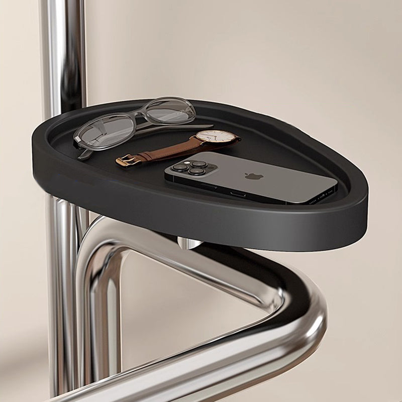 Disponible en negro y marrón, este perchero multifuncional cuenta con estantes con veta de madera clara, estructura de acero inoxidable reforzado y zonas de almacenamiento inteligentes para colgar ropa, accesorios y elementos esenciales diarios, perfecto para entradas, dormitorios o áreas de vestidor.