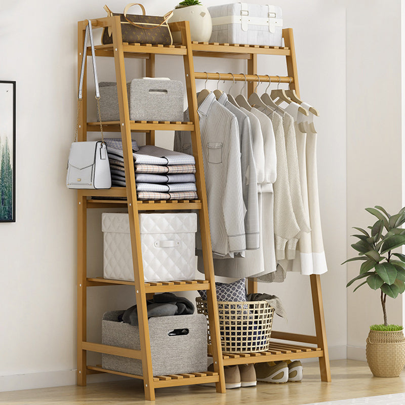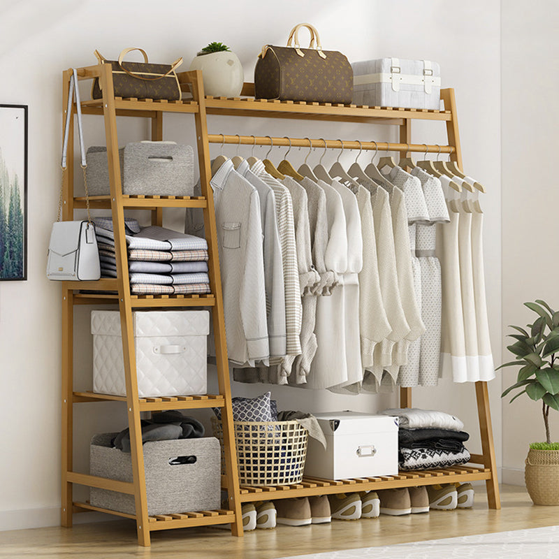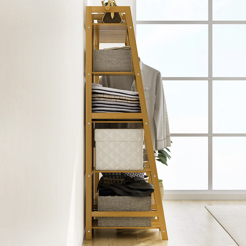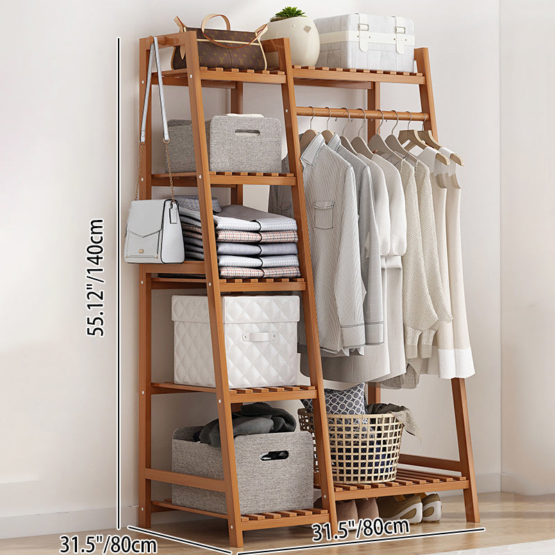 Este moderno y minimalista perchero de bambú nan presenta un diseño duradero de 5 niveles con una plataforma de almacenamiento superior, perfecto para organizar tu dormitorio. El material de bambú nan natural ofrece excelente capacidad de carga y durabilidad, aunque pueden ocurrir ligeras variaciones de color debido a diferentes lotes de bambú. Ganchos multifuncionales y un diseño de base elevada proporcionan espacio de almacenamiento adicional y fácil limpieza. Con su construcción sólida, barra de colgar reforzada y características de seguridad, este estante combina estilo y practicidad. Disponible en colores madera natural y té, es una adición versátil a cualquier dormitorio.