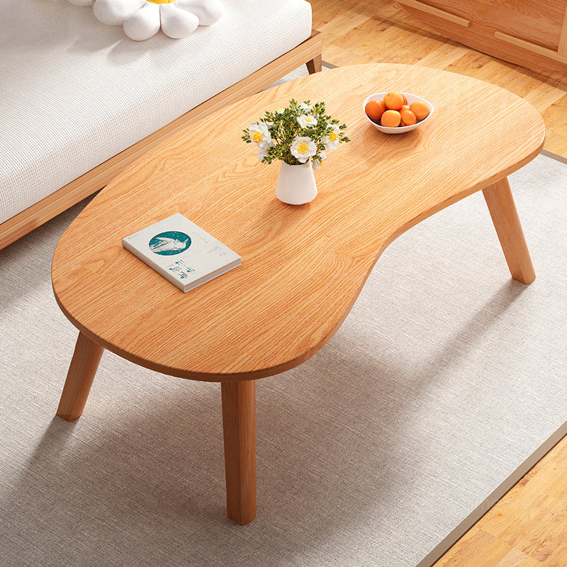 Traditional Japanese Engineered Wood Metal Curved Cashew-Shaped Coffee Table 1-Tier For Living Room