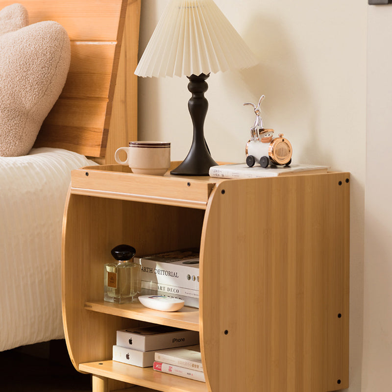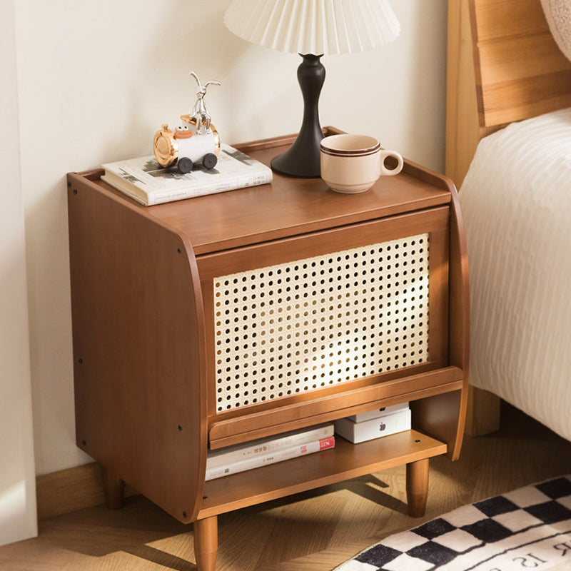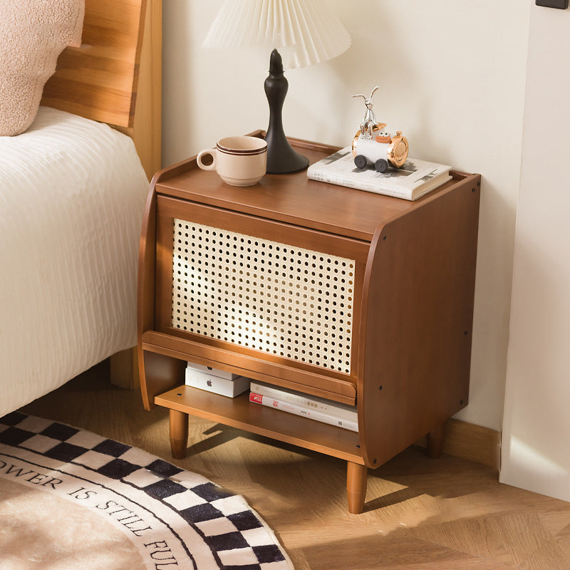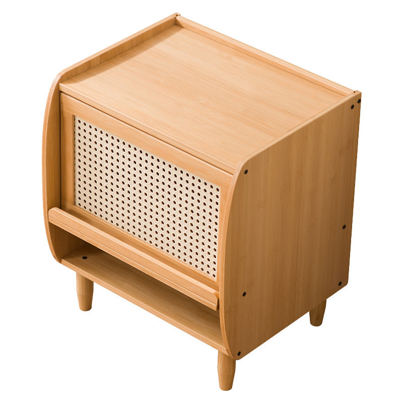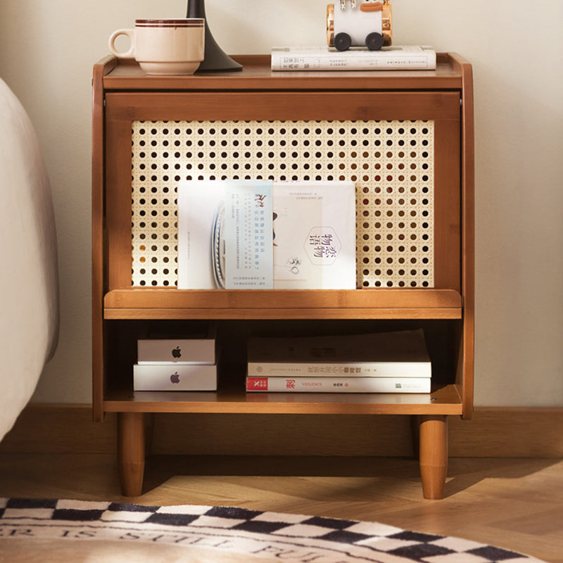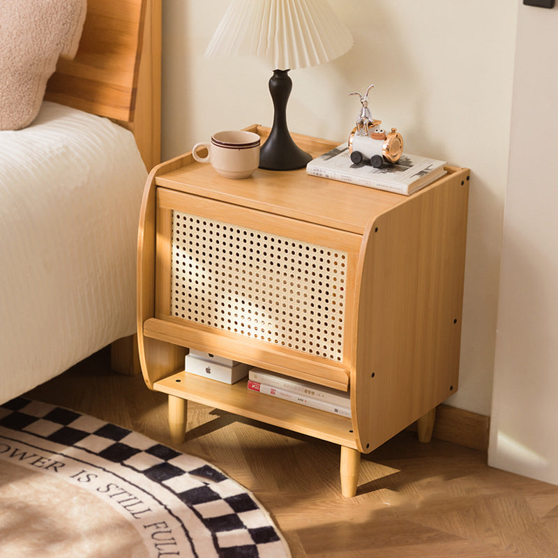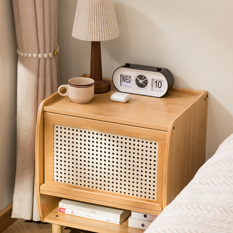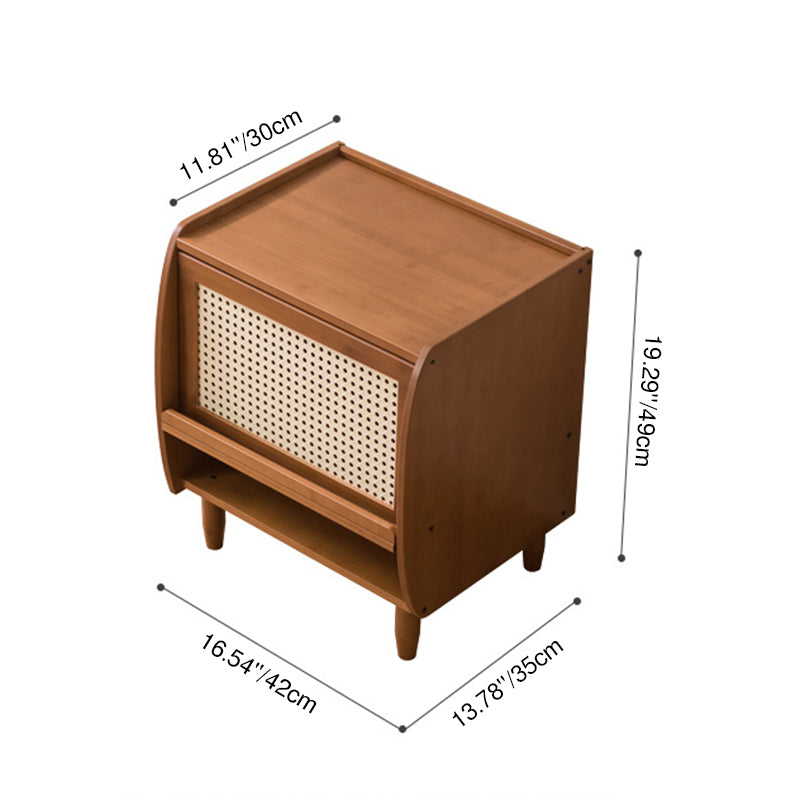 Traditional Japanese Square Rectangular Nan Bamboo MDF Plastic Rattan Weaving Nightstand 1-Cabinet For Bedroom