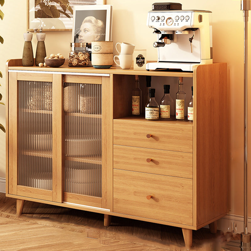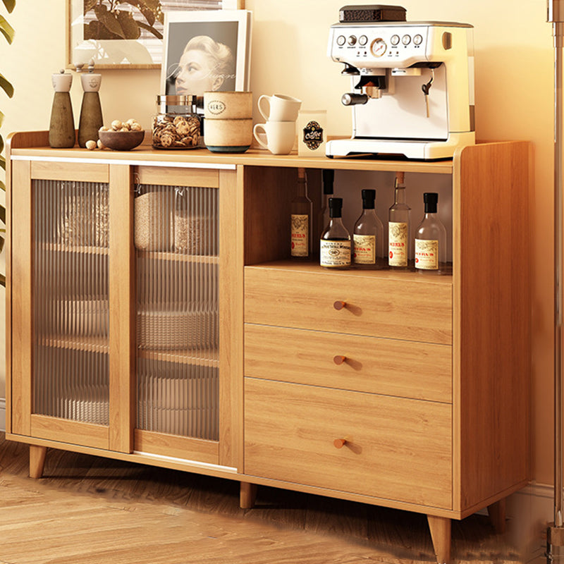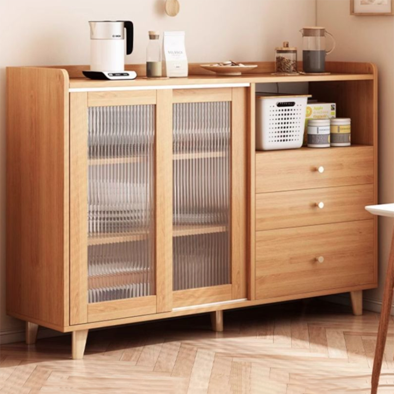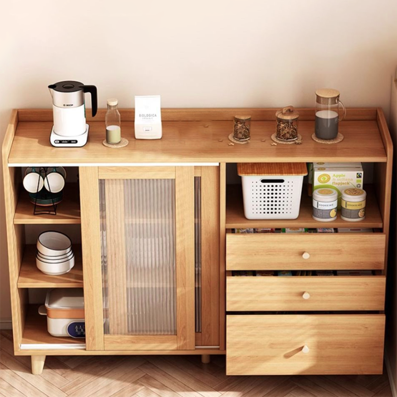 Bring natural warmth to your home with this traditional Japanese-style solid wood sideboard, designed in a clean rectangular form and finished in a light natural wood color. Featuring 3 smooth drawers, acrylic accents, and a large segmented storage layout, this cabinet offers ample space for organizing dinnerware and essentials in the living or dining room. Perfect for modern, minimalist, and Japandi-inspired interiors.
