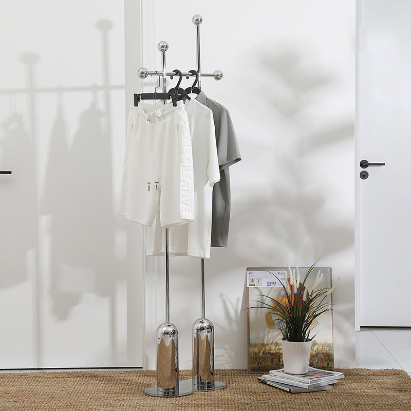Achieve an instant high-end upgrade for your interior with this striking contemporary luxury stainless steel coat rack. The entire structure is defined by bold, clean minimalist lines and a radiant, sleek mirror-silver finish, transforming a functional item into a piece of modern sculptural art. This robust design is crafted from premium stainless steel, ensuring long-lasting durability and exceptional stability for a refined, elevated look.