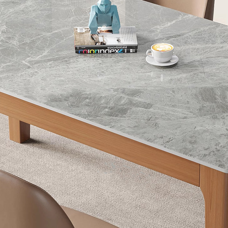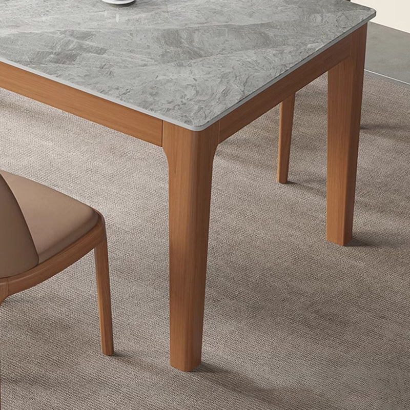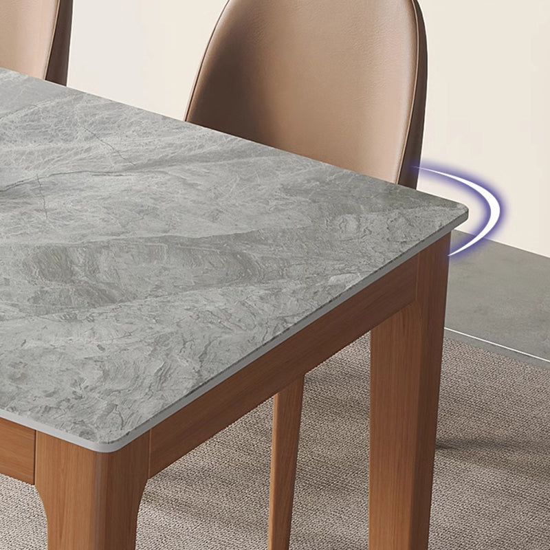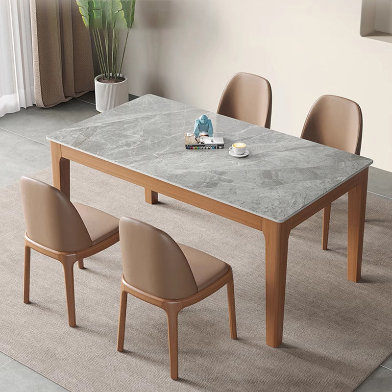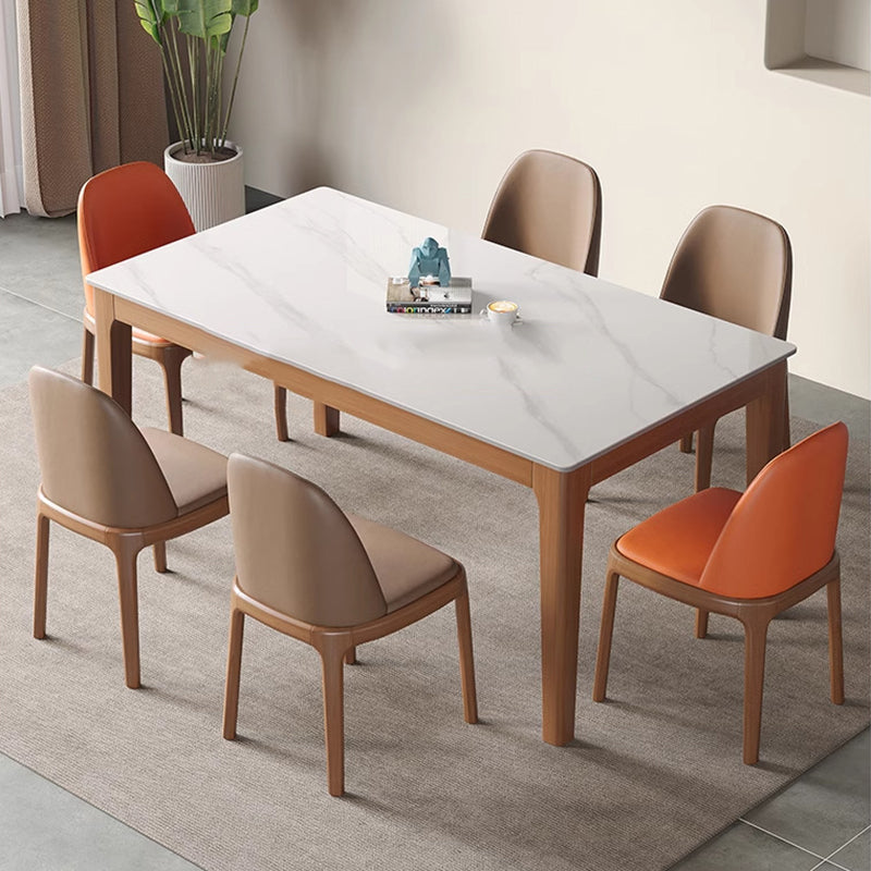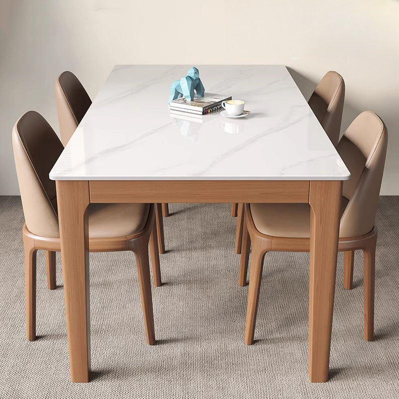 Esta mesa de comedor nórdica moderna presenta una superficie de piedra combinada con madera de caucho maciza, ofreciendo excelente resistencia al calor, resistencia al agua y estabilidad duradera. El diseño rectangular redondeado con bordes suaves anti-colisión la hace ideal para espacios de comedor familiares, combinando seguridad, elegancia y funcionalidad diaria en un entorno de comedor limpio y moderno.