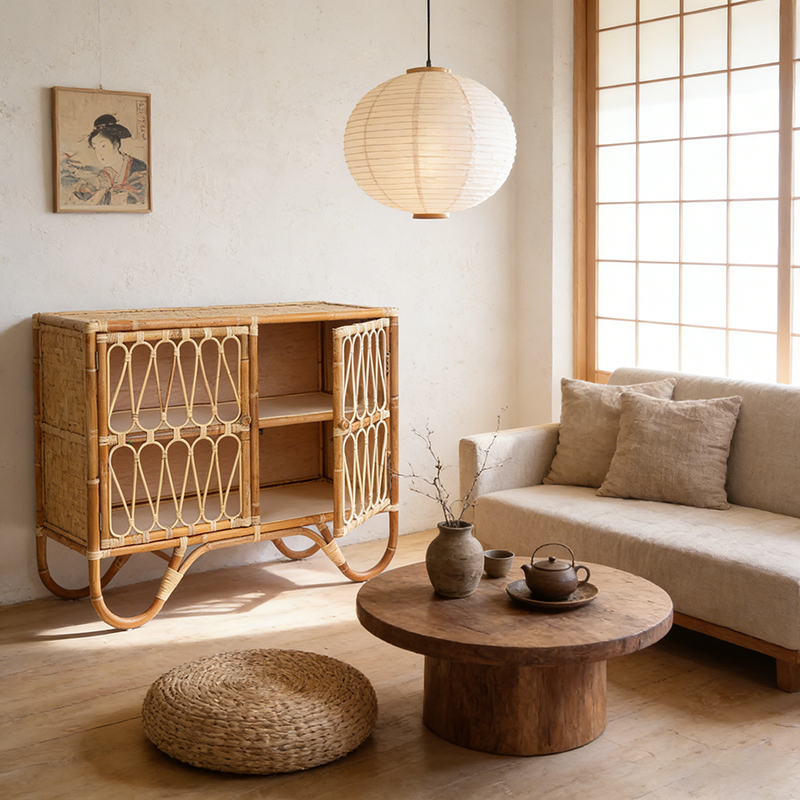 Premium Materials: Made from densely handwoven natural Indonesian rattan paired with light-toned solid wood, ensuring durability and a natural look.