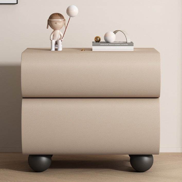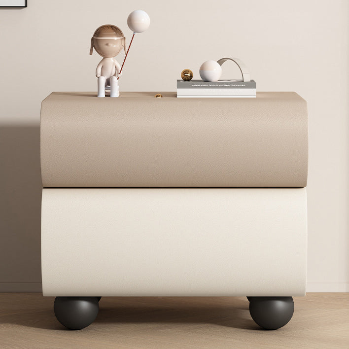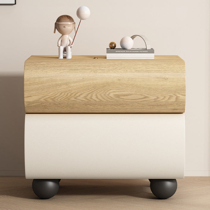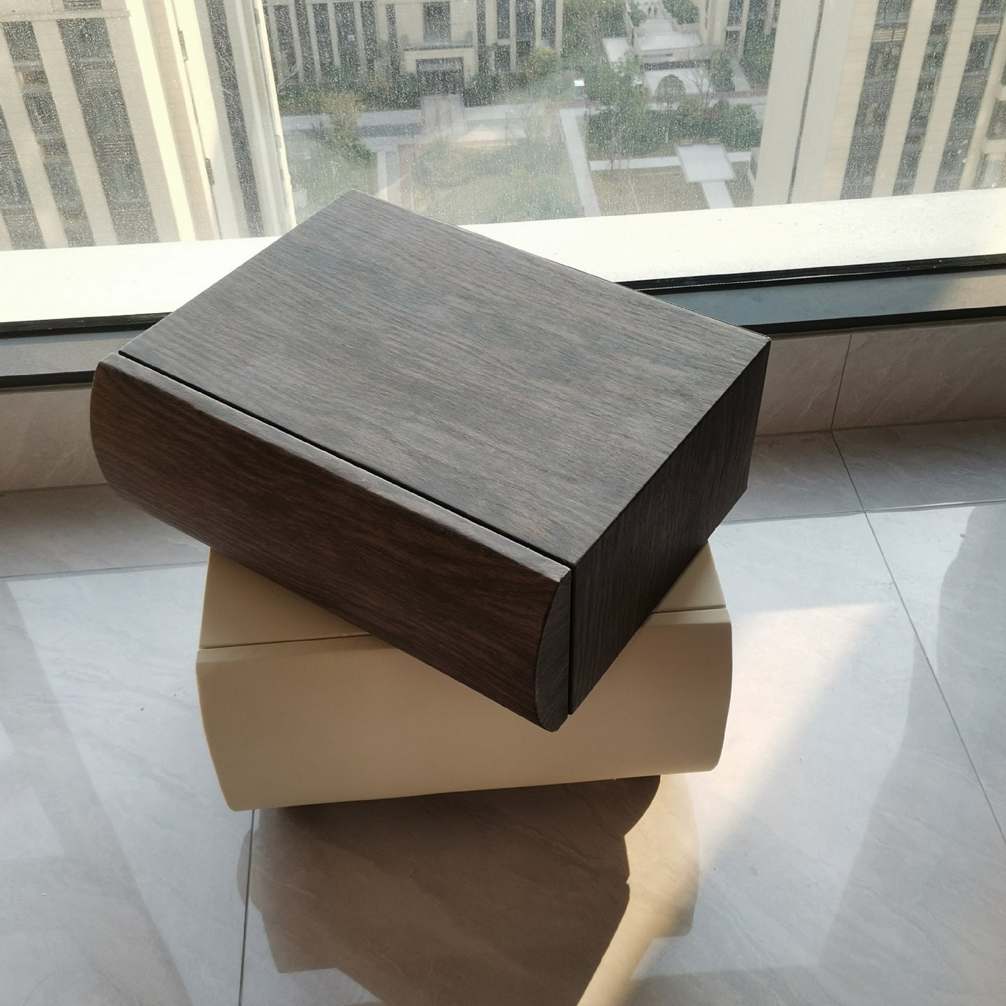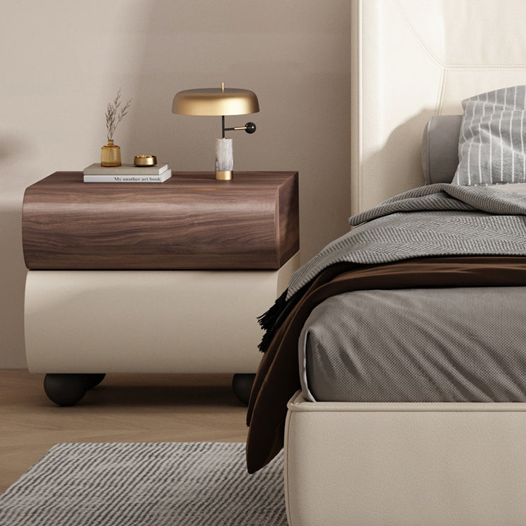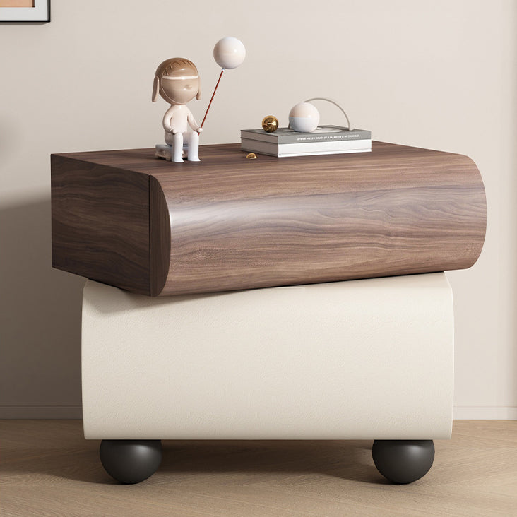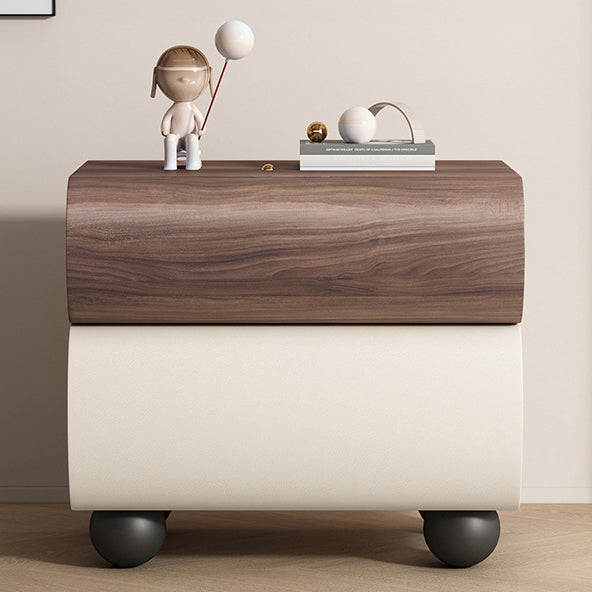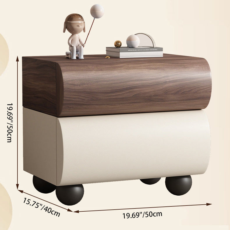This contemporary creative rotating nightstand combines solid wood, faux leather, and carbon steel with a curved spherical design for a distinctive modern bedroom statement. Featuring 360° free rotation, dual-layer storage drawers, and layered organization, it offers smooth, flexible access while keeping essentials neatly stored, available in walnut, beige, pink, khaki, natural wood, and black for versatile styling.