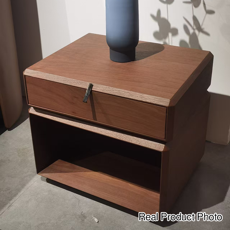 La cálida textura del estilo de diseño retro reside en esta mesita de noche. La parte superior del armario de chapa de madera presume de vetas naturales, exudando una elegancia antigua, y puede girar con flexibilidad, añadiendo comodidad al acceder a los objetos. El armario está fabricado con tablero multicapa de madera maciza de alta calidad --- un material robusto que equilibra durabilidad y respeto por el medio ambiente, libre de contaminación dañina, ideal para un espacio de vida retro saludable. El cajón de chapa de madera cuenta con rieles suaves, deslizándose sin ningún atasco; junto con el armario de almacenamiento abierto debajo, los objetos cotidianos de la mesilla de noche pueden organizarse ordenadamente en zonas separadas. El tirador de hardware de titanio gris lo adorna, mostrando una textura elegante en líneas simples, mejorando el refinamiento del estilo retro. Colóquelo junto a la cama, y cada movimiento de abrir y cerrar esconde la elegancia de tiempos antiguos y la practicidad de la vida diaria moderna.