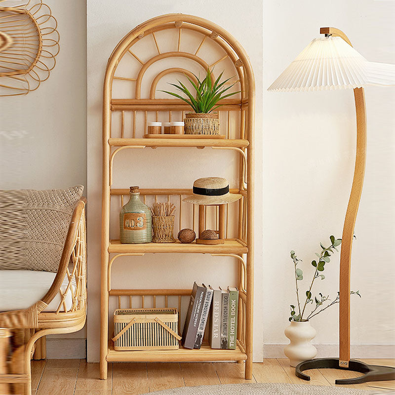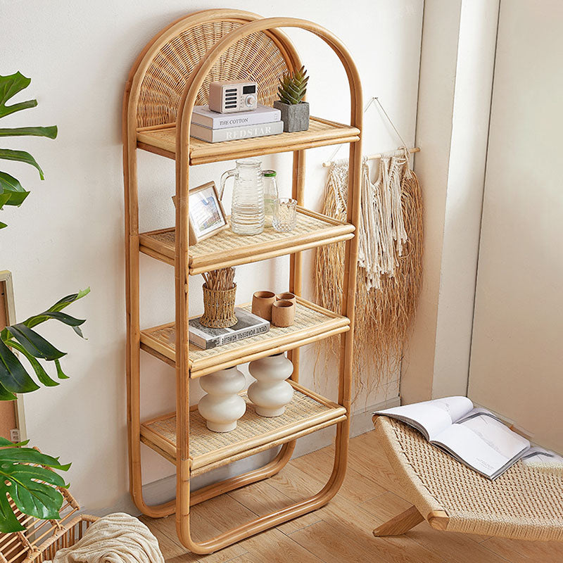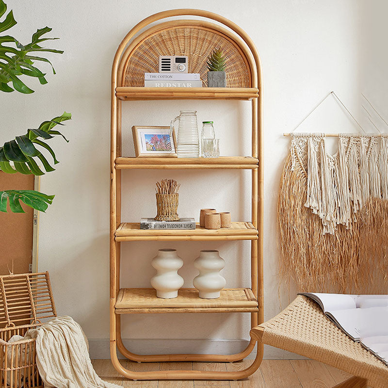 Esta estantería de ratán de estilo japonés tradicional está hecha de ratán natural indonesio, con un elegante marco arqueado y estructura rectangular que añade calidez y textura a cualquier espacio. Diseñada con 3 amplios niveles, ofrece almacenamiento estable y transpirable para libros y decoración, lo que la convierte en una estantería de almacenamiento perfecta para la sala de estar con una estética ligera y natural.