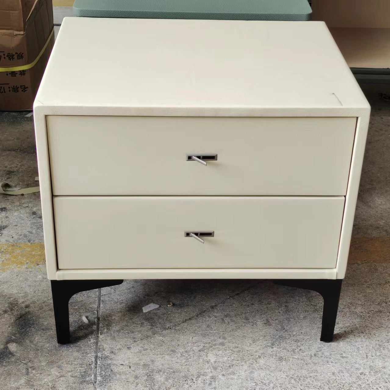 Contemporary Cream White Bedside Table With Dual Drawers - Scandinavian Faux Leather Nightstand For Modern Bedroom