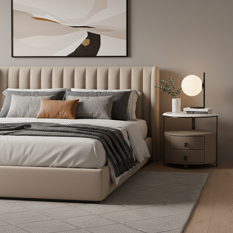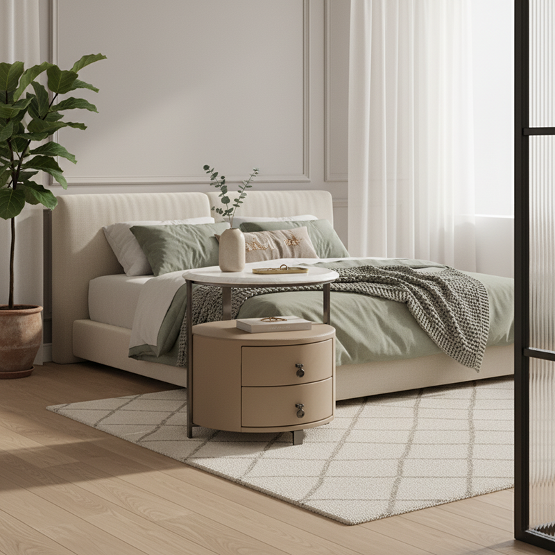 Modern Round Design: Smooth, curved silhouette breaks away from traditional square forms, bringing a soft and elegant presence to your bedroom décor.