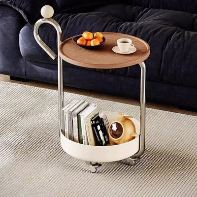 Modern Art Deco Round Solid Wood End Table 1-Tier For Living Room