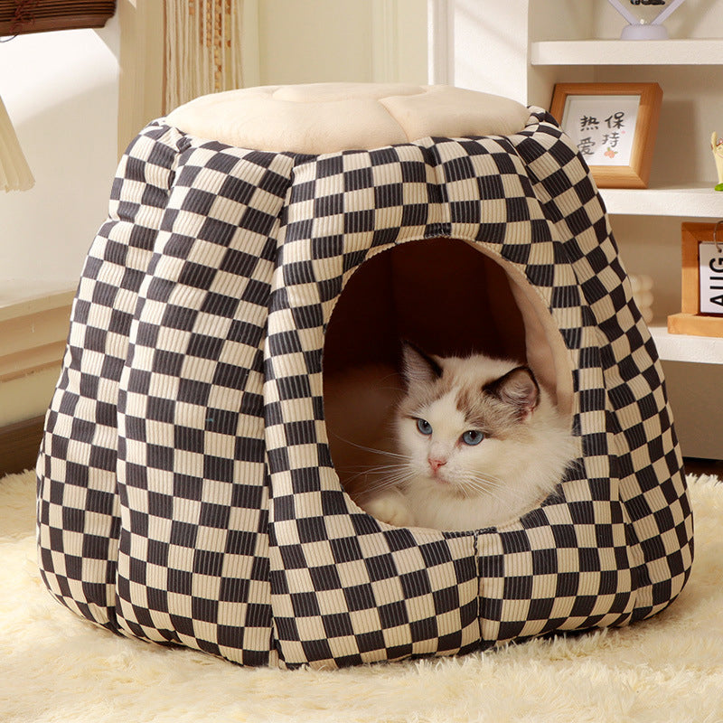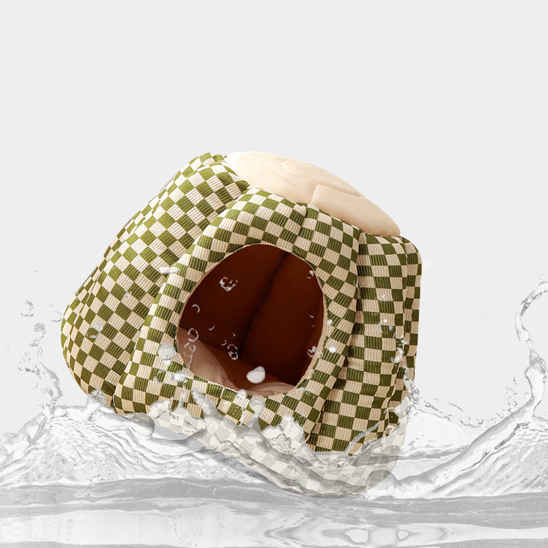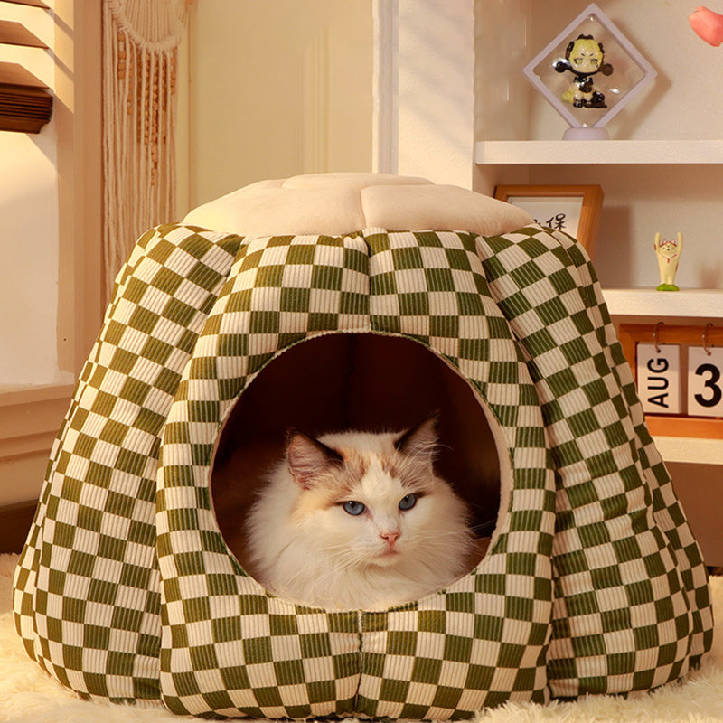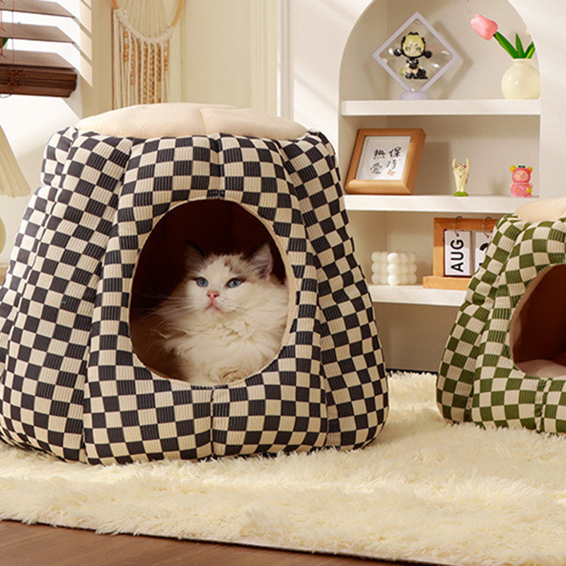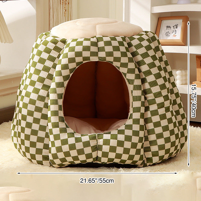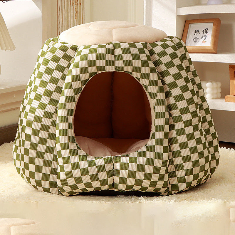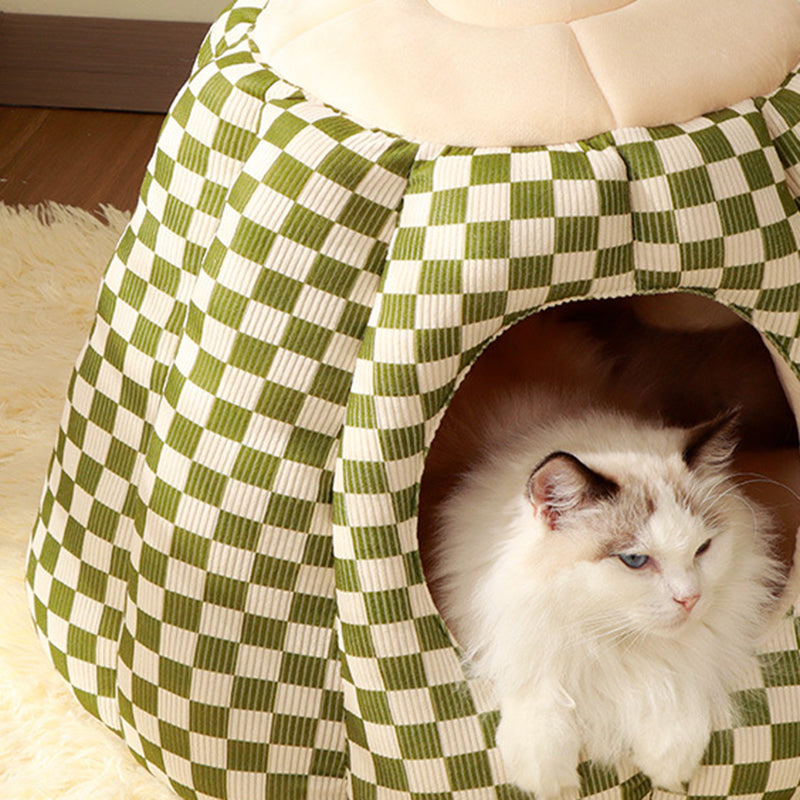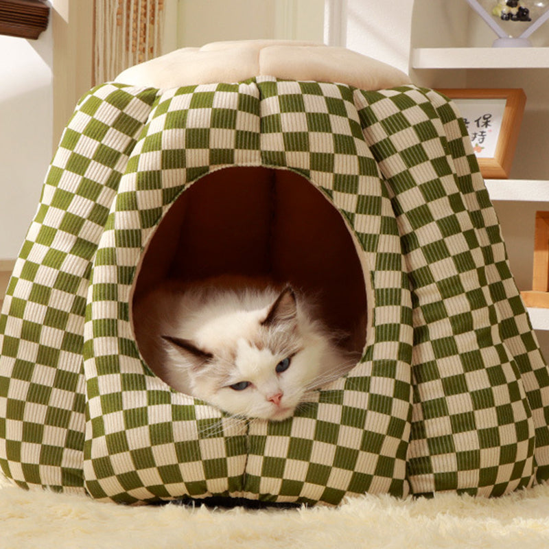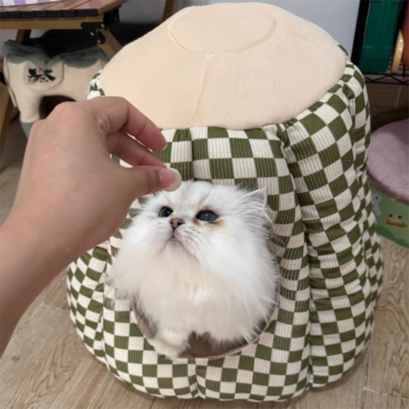 This contemporary Nordic-style cat bed is made with durable PP cotton and crystal velvet, offering excellent warmth and comfort for your pets. Its unique pineapple shape features a cozy 1-hole design, perfect for cats and small dogs. Available in green and grey, this washable pet bed is ideal for use in living rooms or bedrooms, providing a stylish and functional resting space for your furry friends.