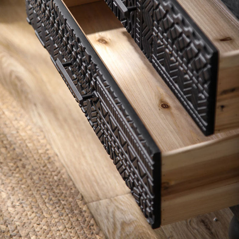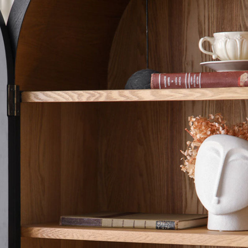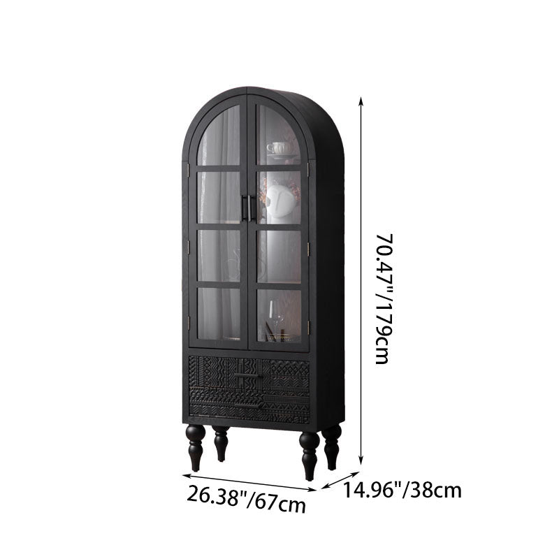 Contemporary Scandinavian Arched Pine Wood MDF Glass Storage Cabinet With 2-Drawer For Bedroom & Living Room