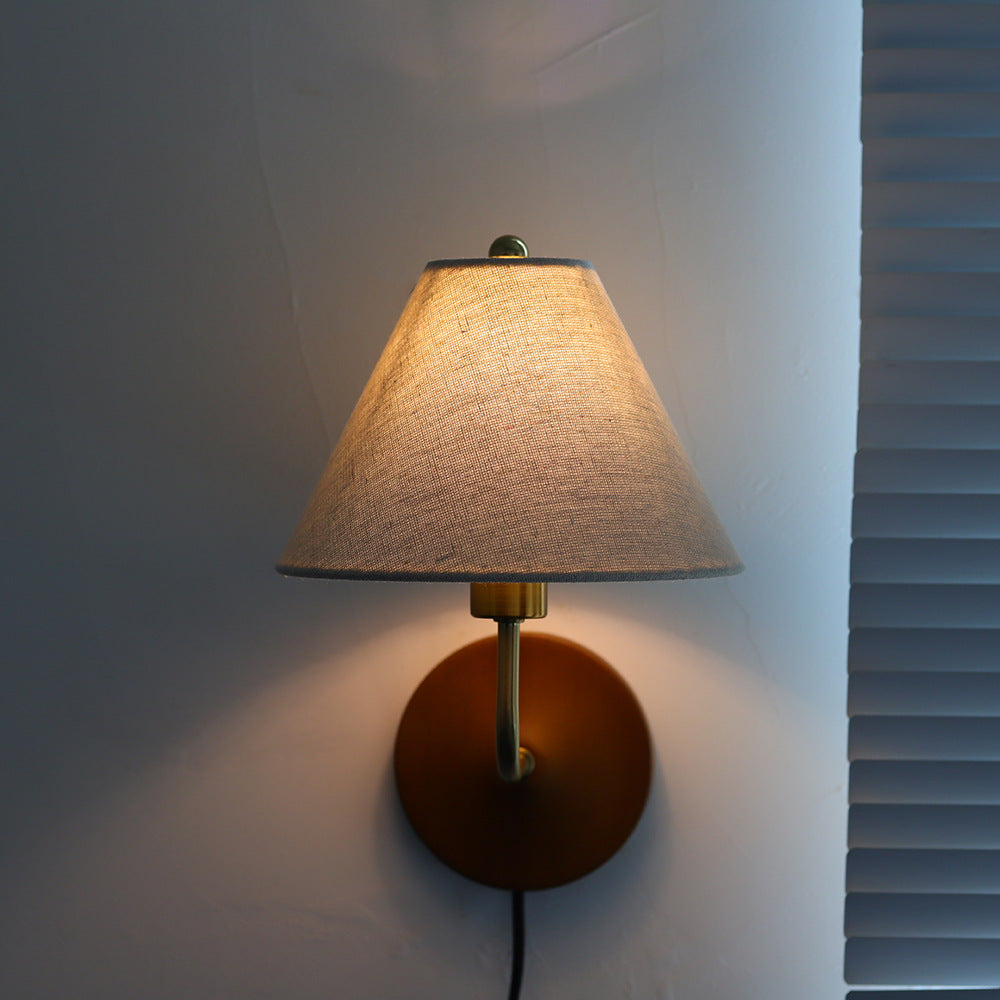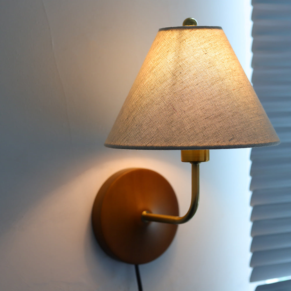 Lámpara de Aplique de Pared de 1 Luz de Tambor Vintage Tradicional de Madera y Cobre con Tela Para Sala de Estar